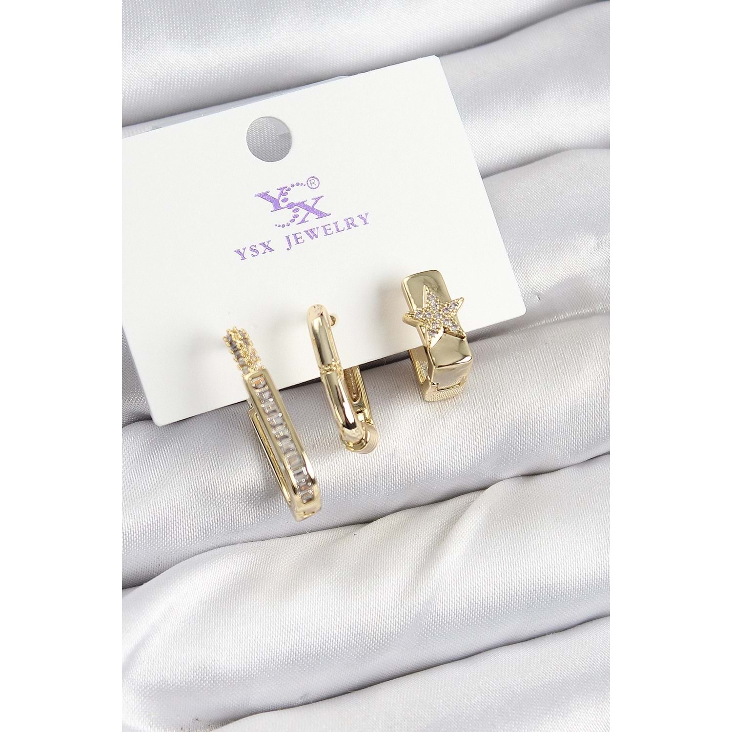 Pirinç Zİrkon Taşlı Yıldız Model Gold Renk 3'lü Kadın Küpe