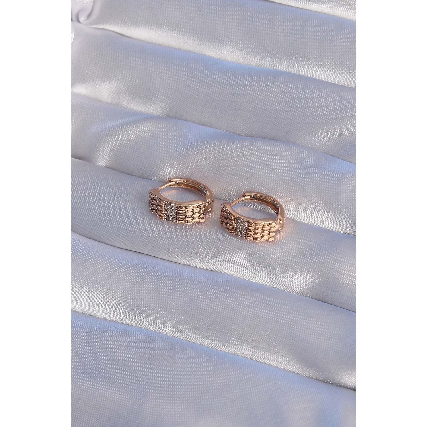 XUPİNG Rose Renk Zirkon Taşlı İşlemeli Halka Küpe