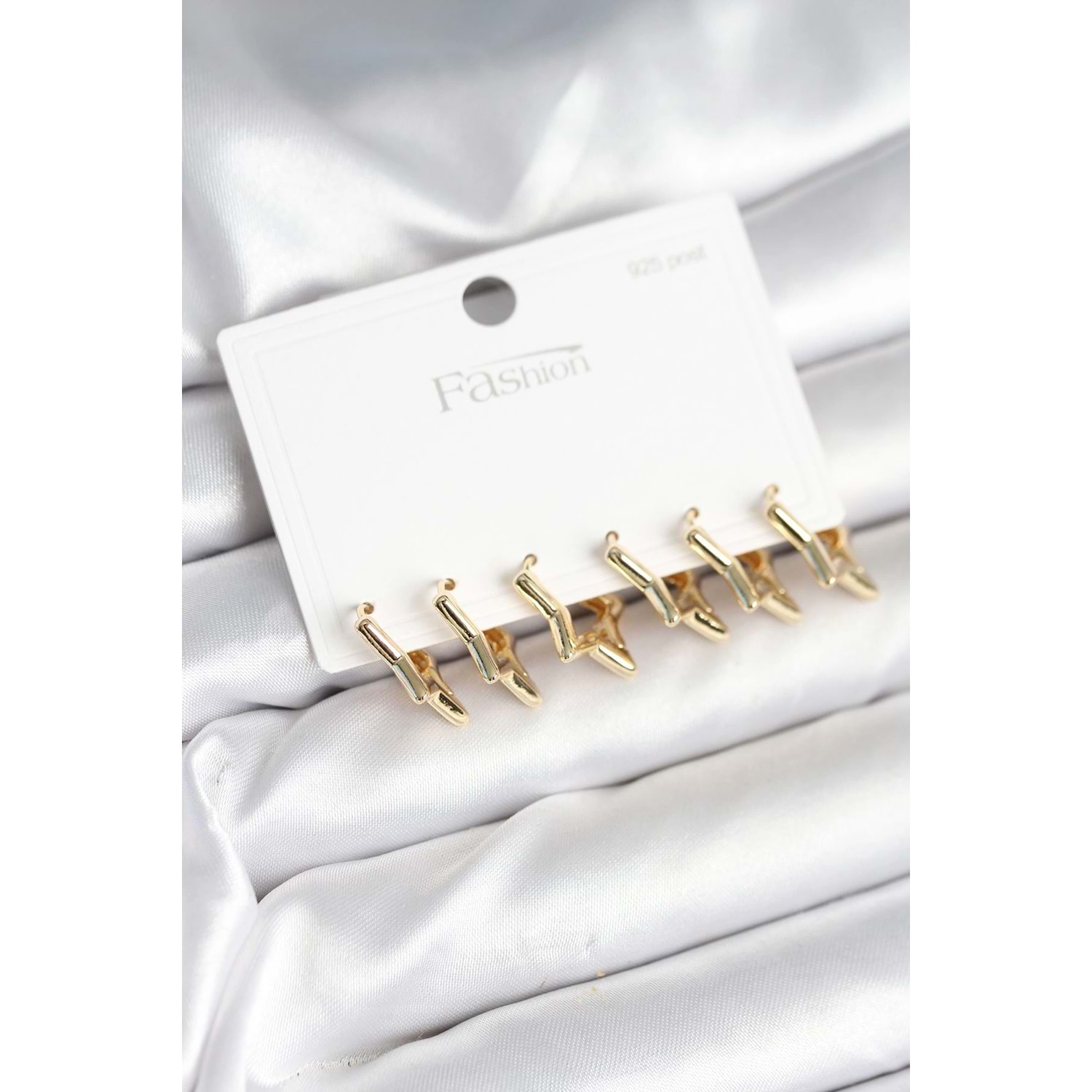 Yıldız Model Gold Renk 925 Ayar Gümüş Çivili Kadın Küpe Seti