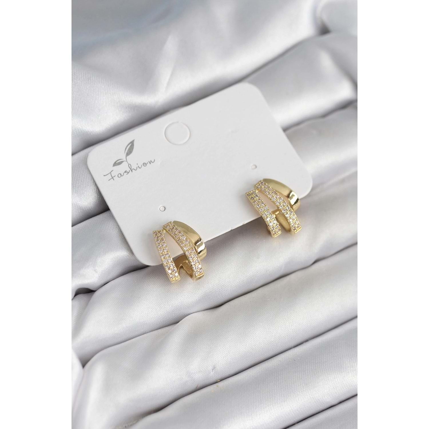 Zirkon Taşlı Gold Renk Kadın Küpe