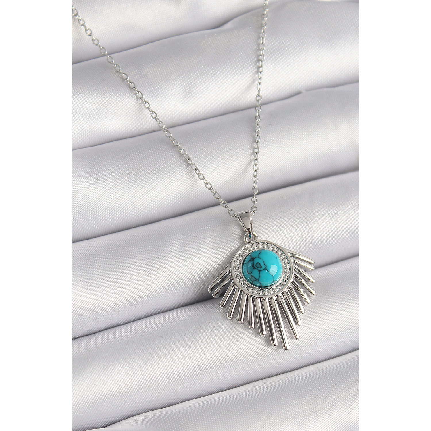 316L Çelik Gümüş Renk Zincir Mavi Boncuklu Zirkon Taşlı Kadın Kolye