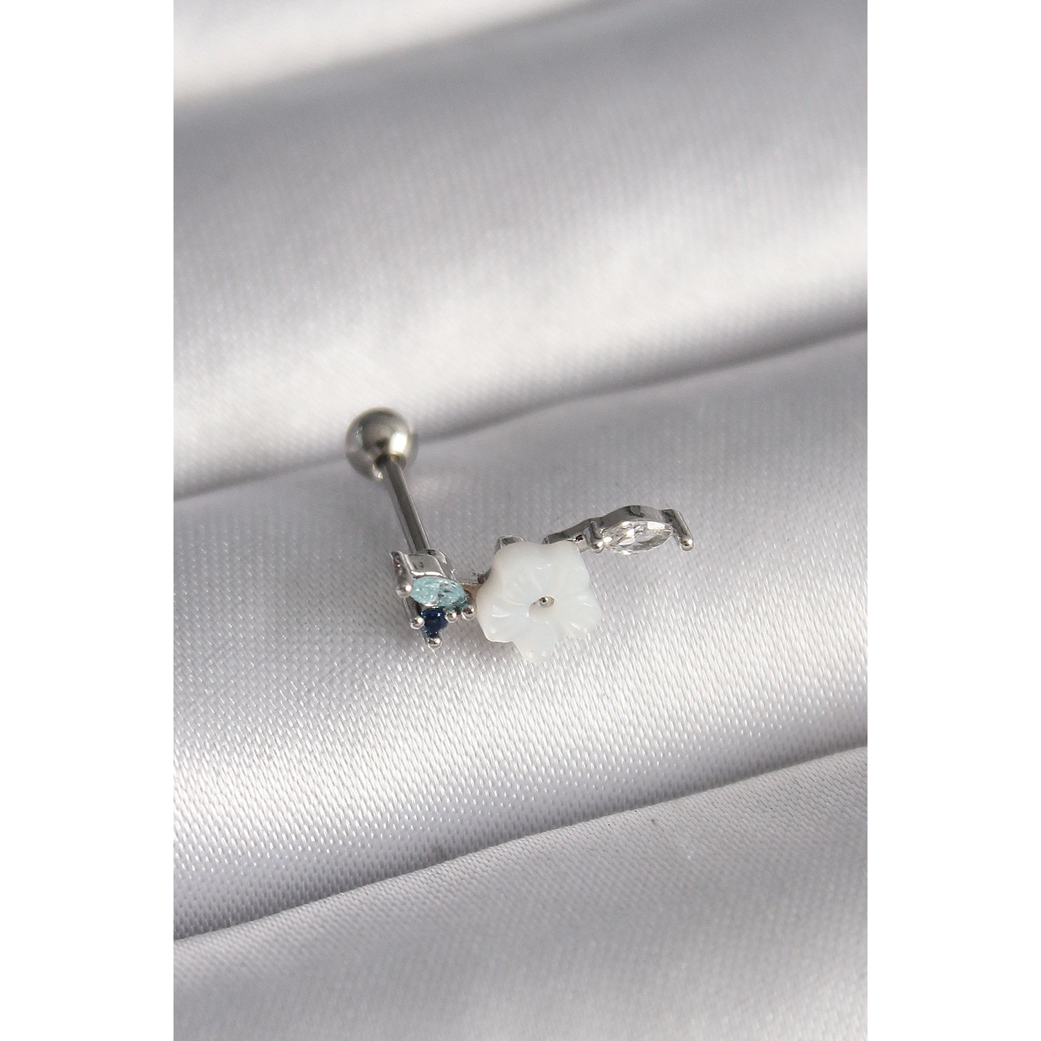 316L Çelik Gümüş Renk Zirkon Taş Detay Beyaz Çiçek Model Tragus Piercing