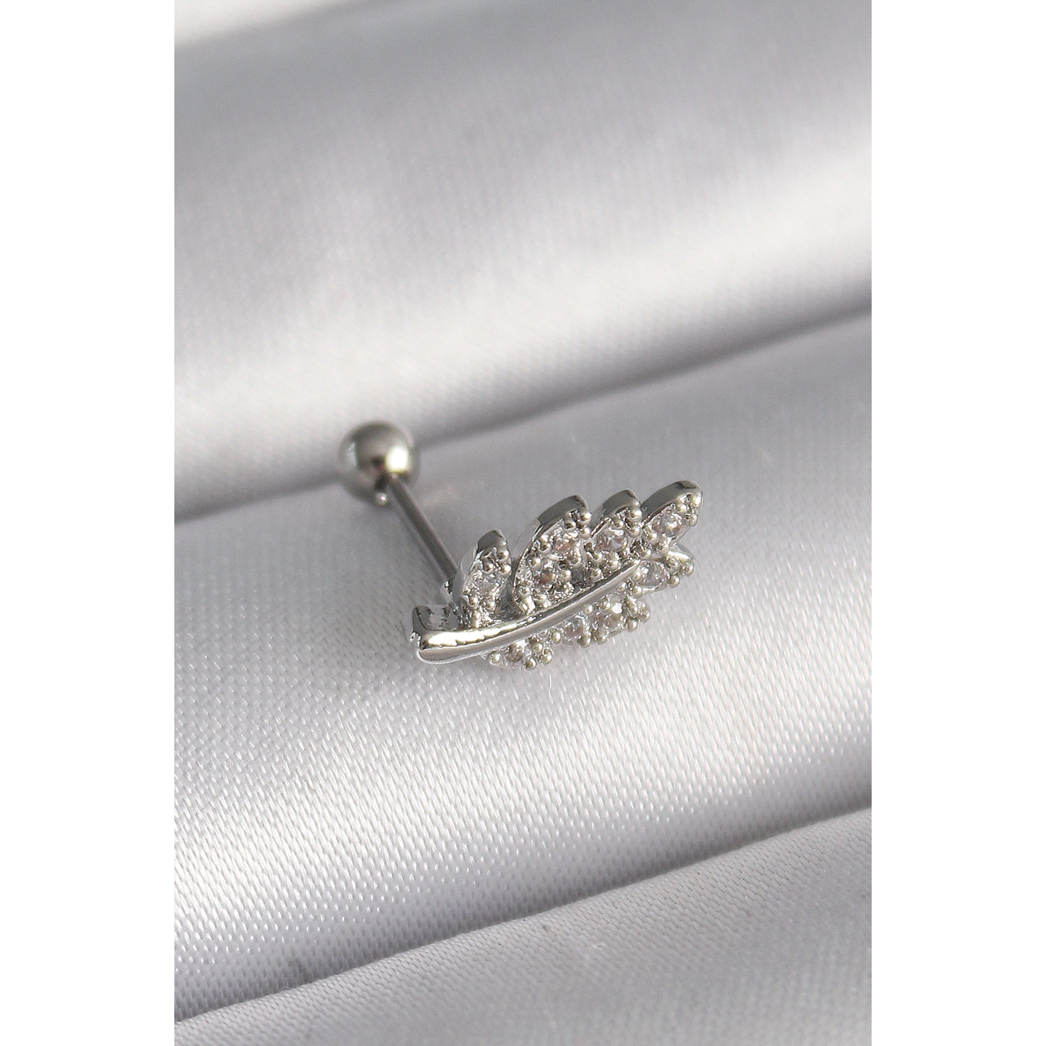 316L Çelik Gümüş Renk Zirkon Taşlı Dal Tragus Piercing