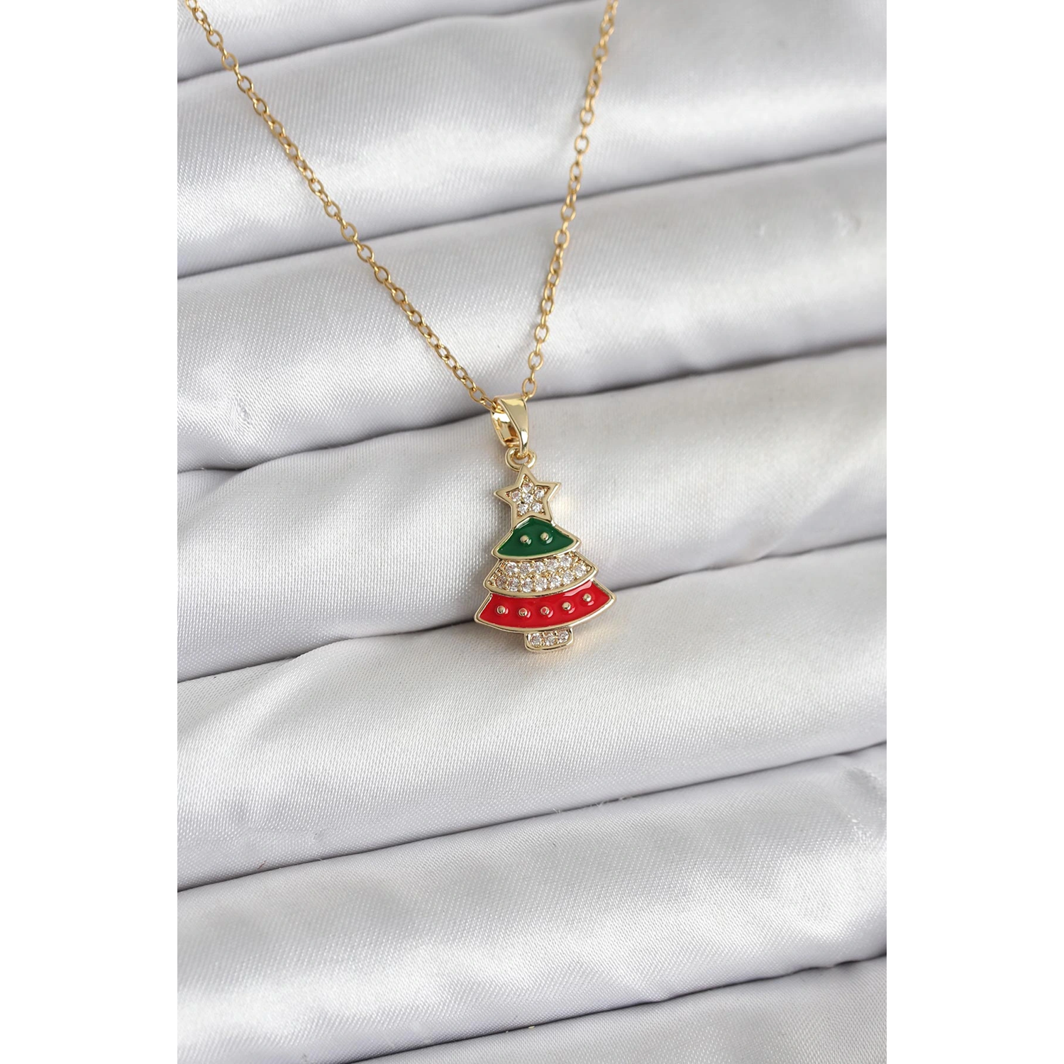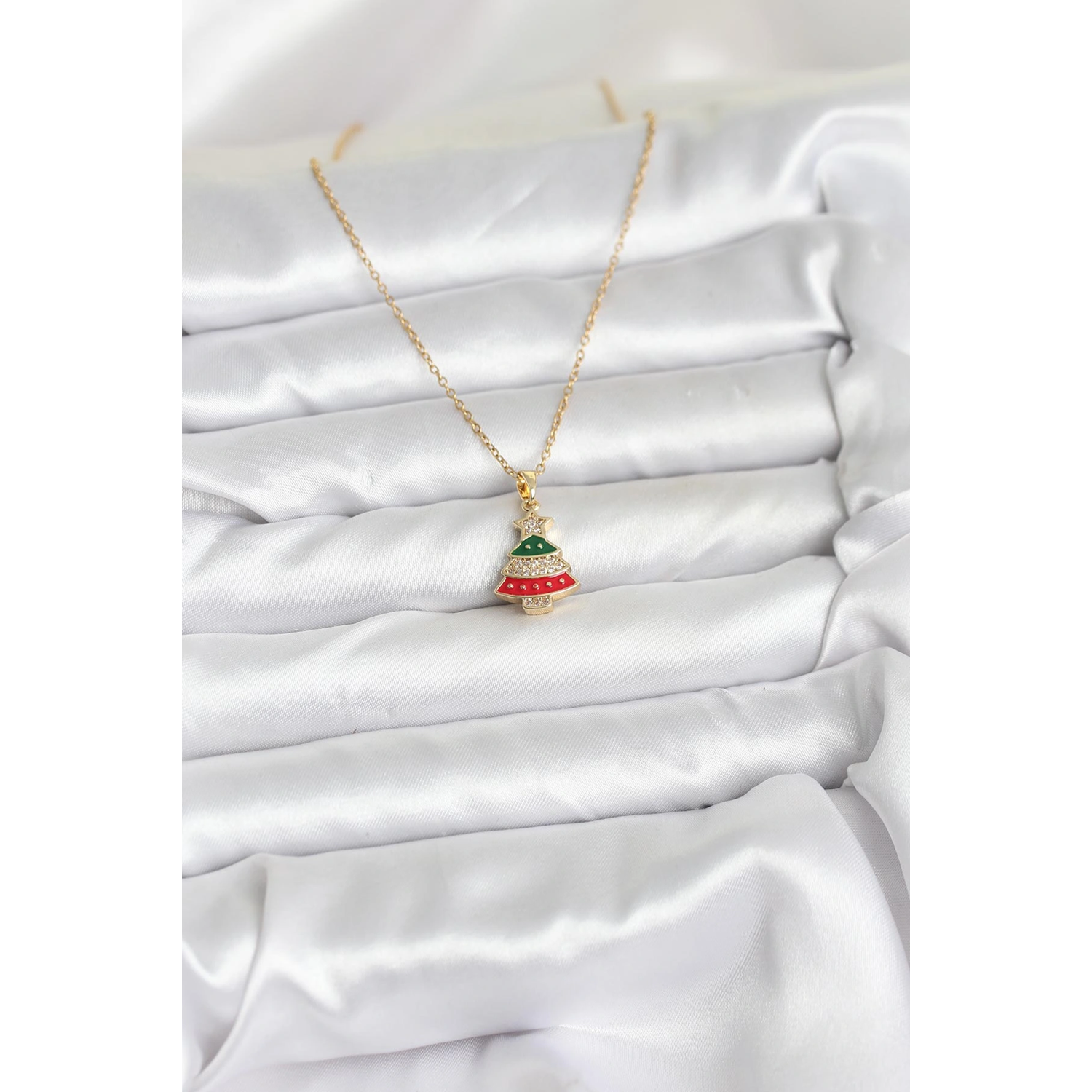 316L Çelik Zincir Gold Ren Çam Ağacı Model Zirkon Taşlı Yılbaşı Temalı Kadın Kolye