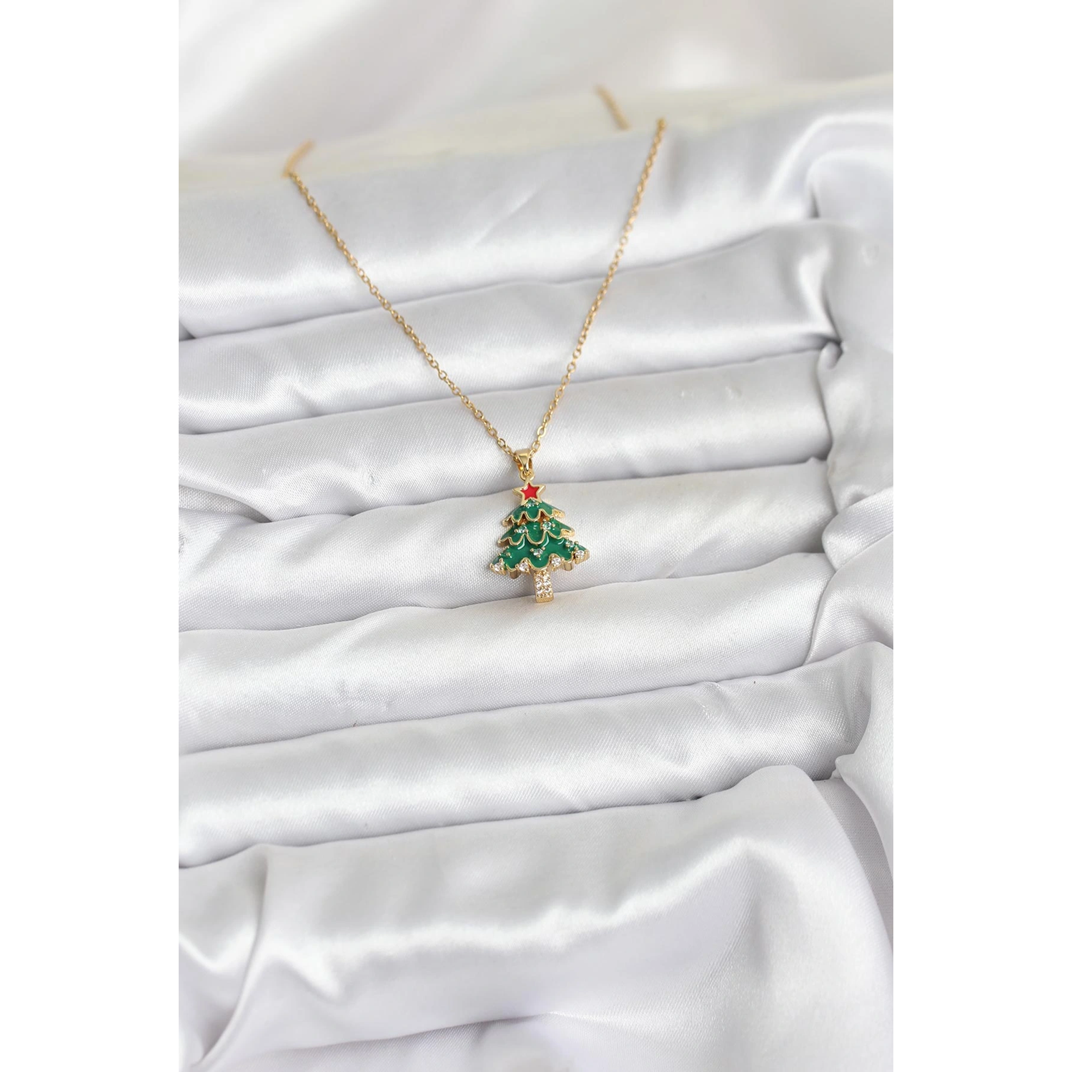 316L Çelik Zincir Gold Renk Çam Ağacı Model Yılbaşı Temalı Kadın Kolye