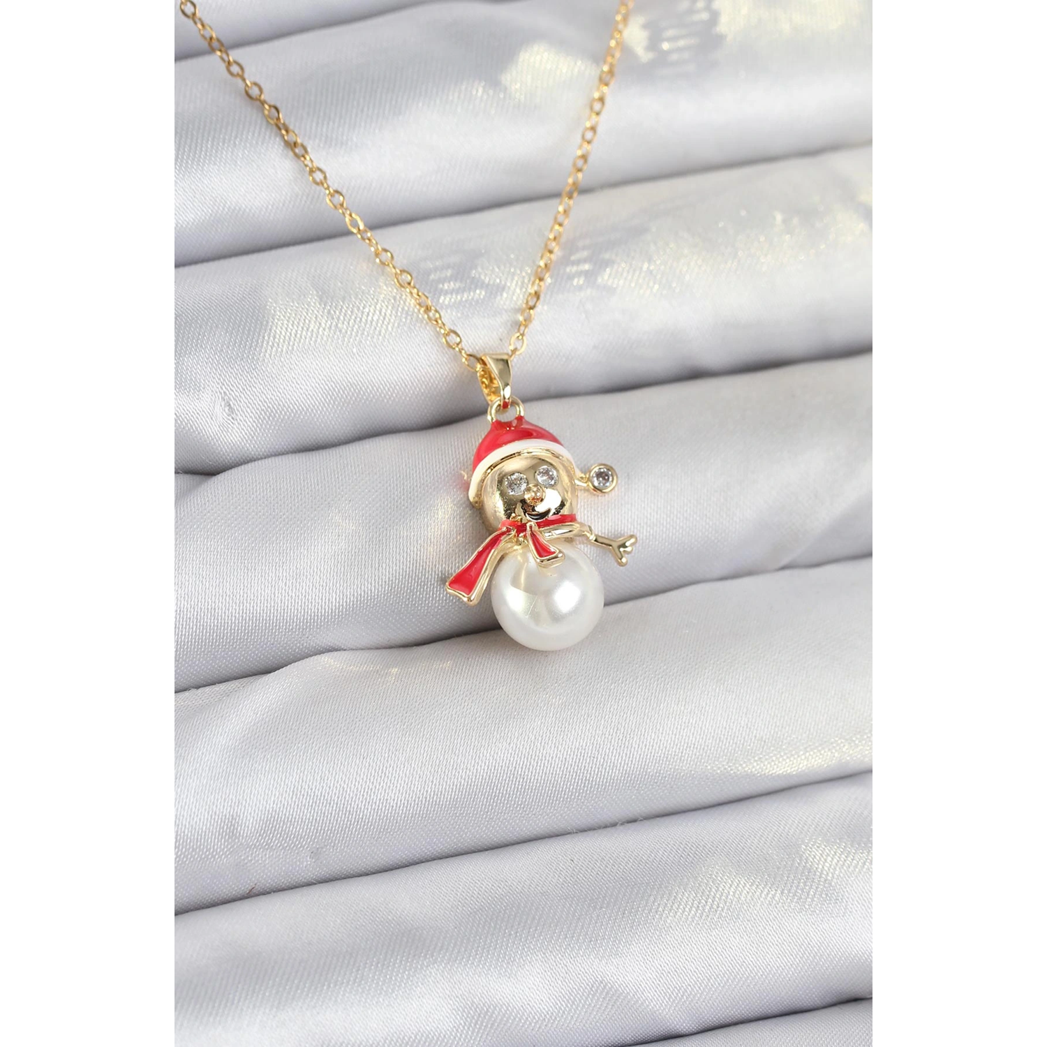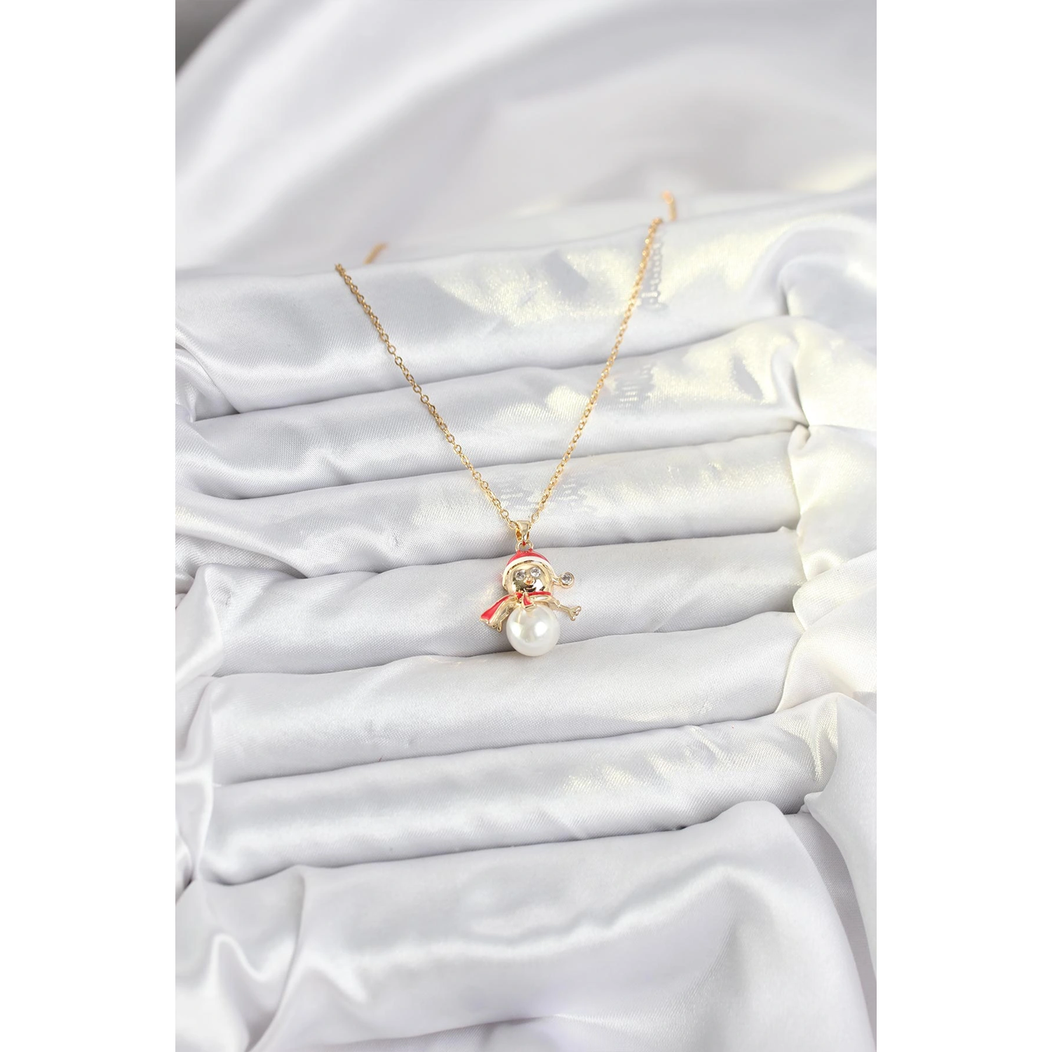 316L Çelik Zincir Gold Renk Kardan Adam Model Yılbaşı Temalı Kadın Kolye
