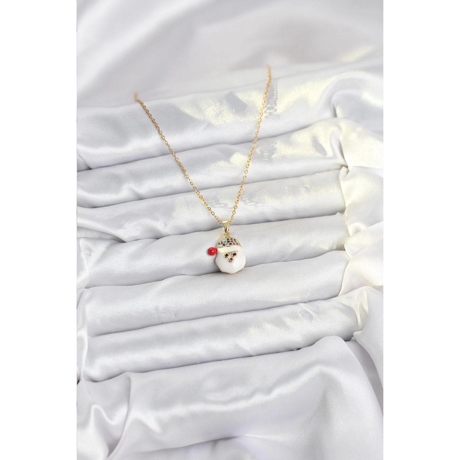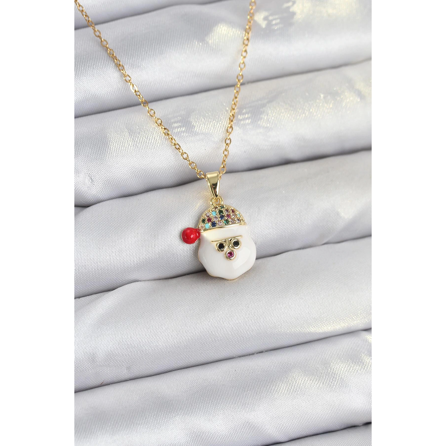 316L Çelik Zincir Gold Renk Şapkalı Kardan Adam Kafası Model Yılbaşı Temalı Kadın Kolye