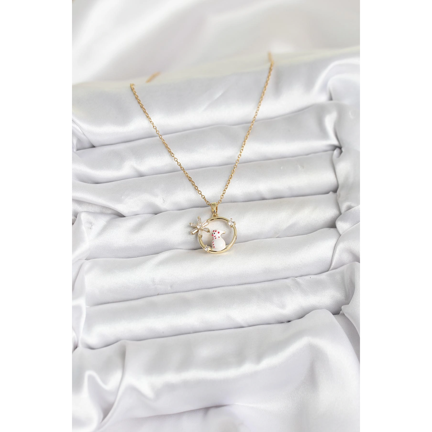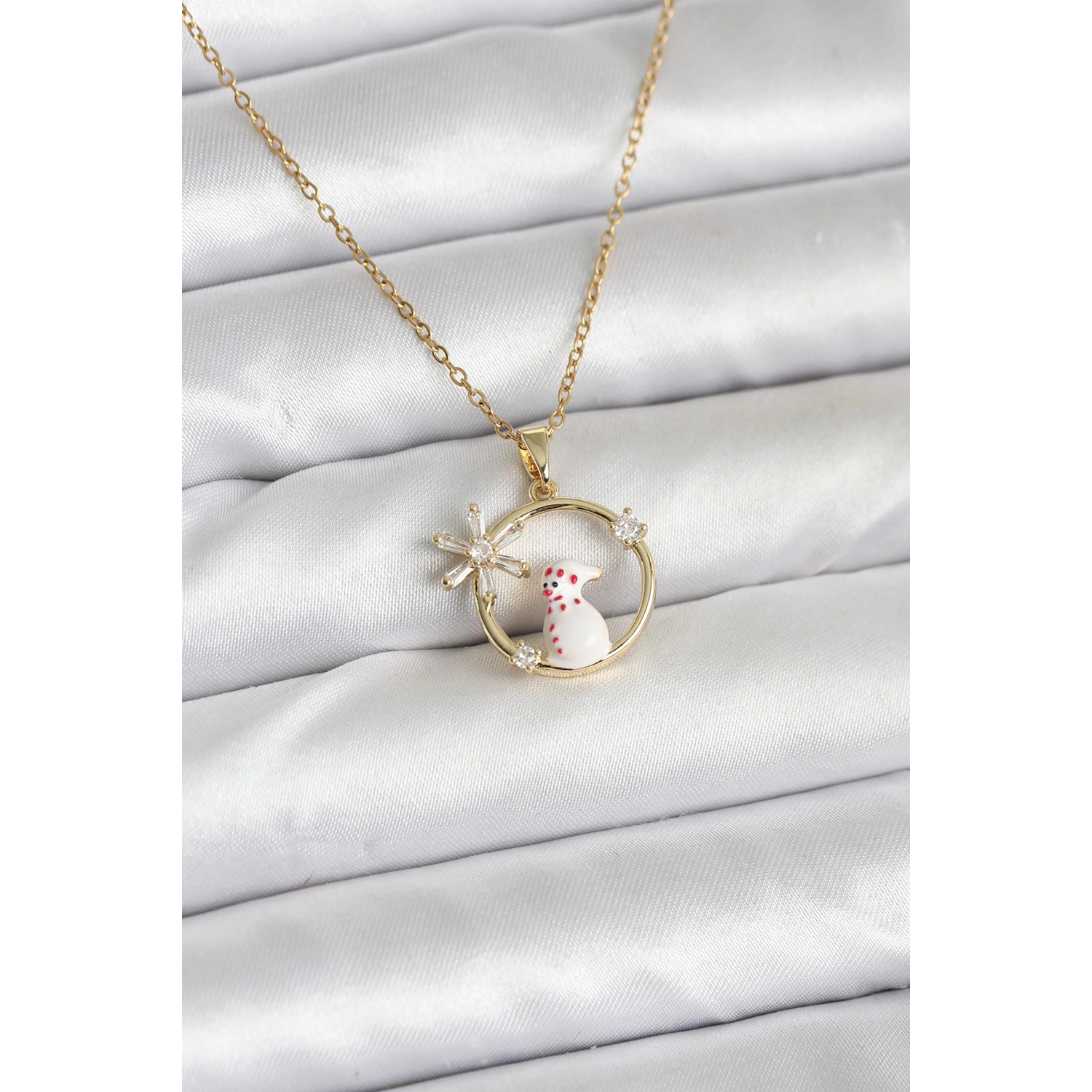 316L Çelik Zincir Gold Zirkon Taşlı Yılbaşı Temalı Kadın Kolye