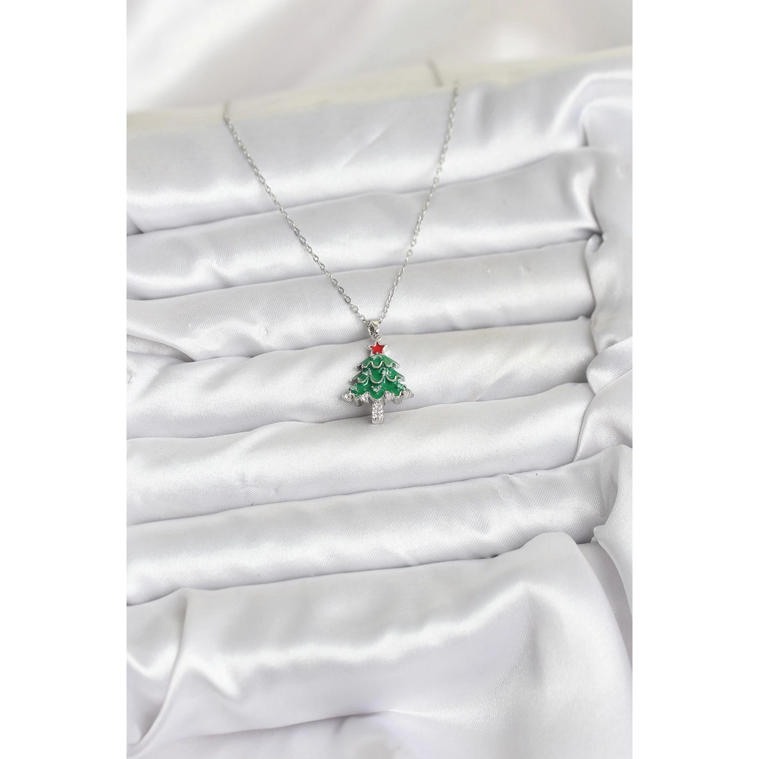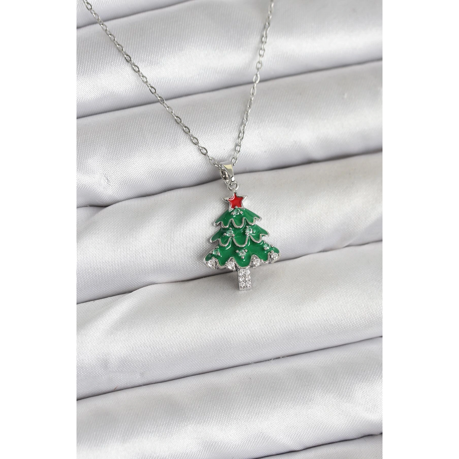 316L Çelik Zincir Gümüş Renk Çam Ağacı Model Yılbaşı Temalı Kadın Kolye