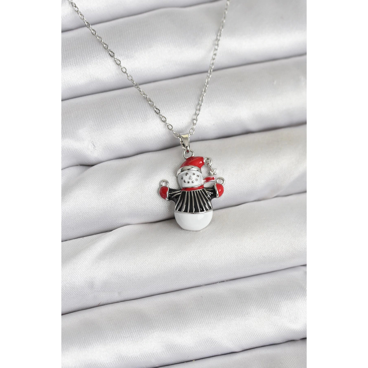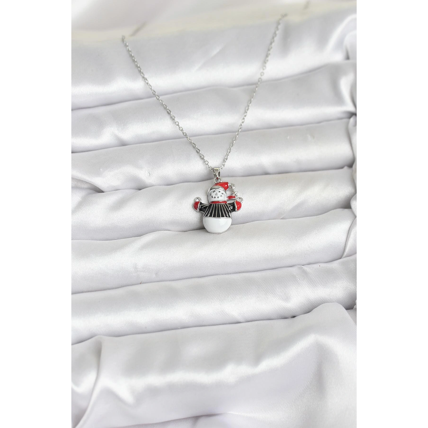 316L Çelik Zincir Gümüş Renk Kardan Adam Figürlü Yılbaşı Temalı Kadın Kolye
