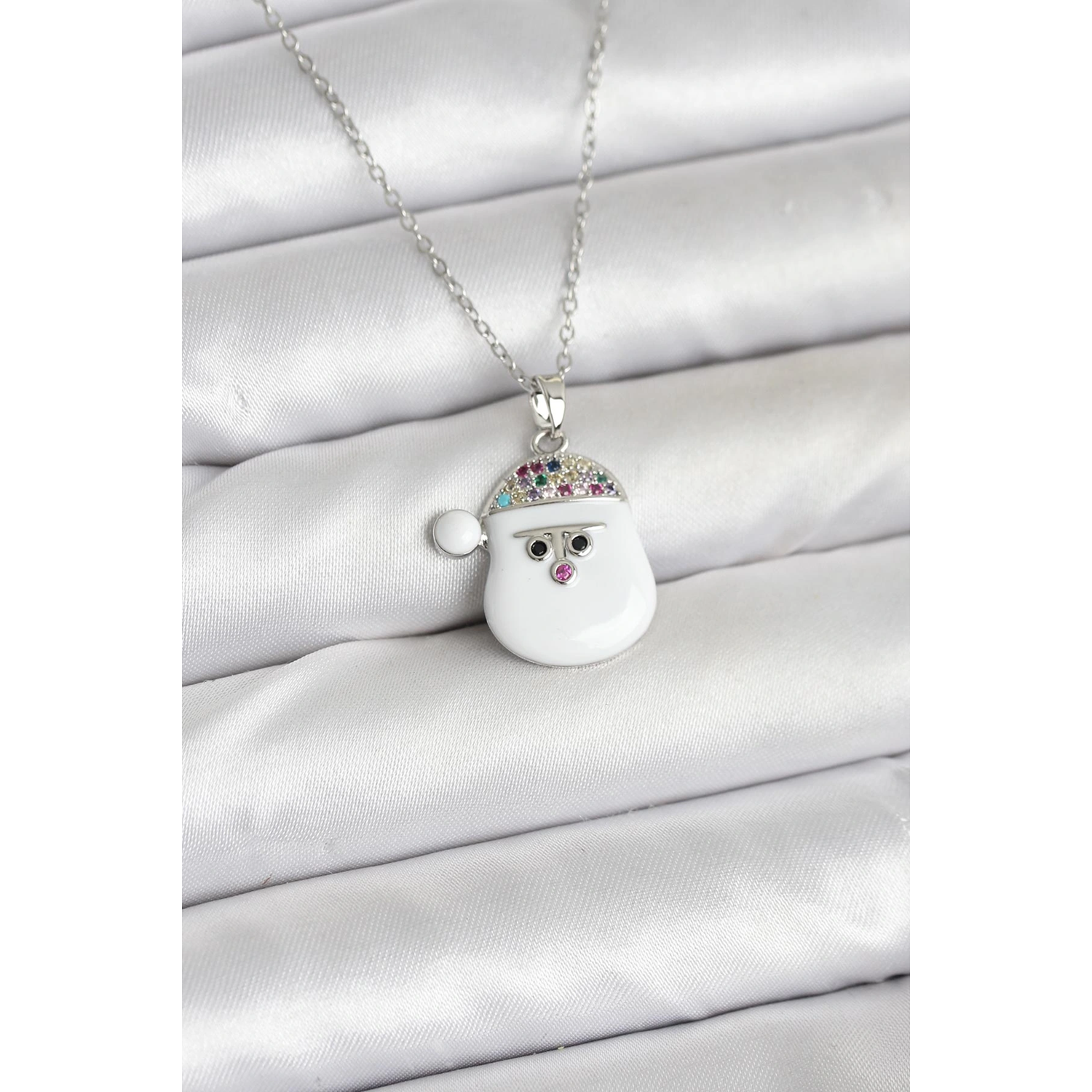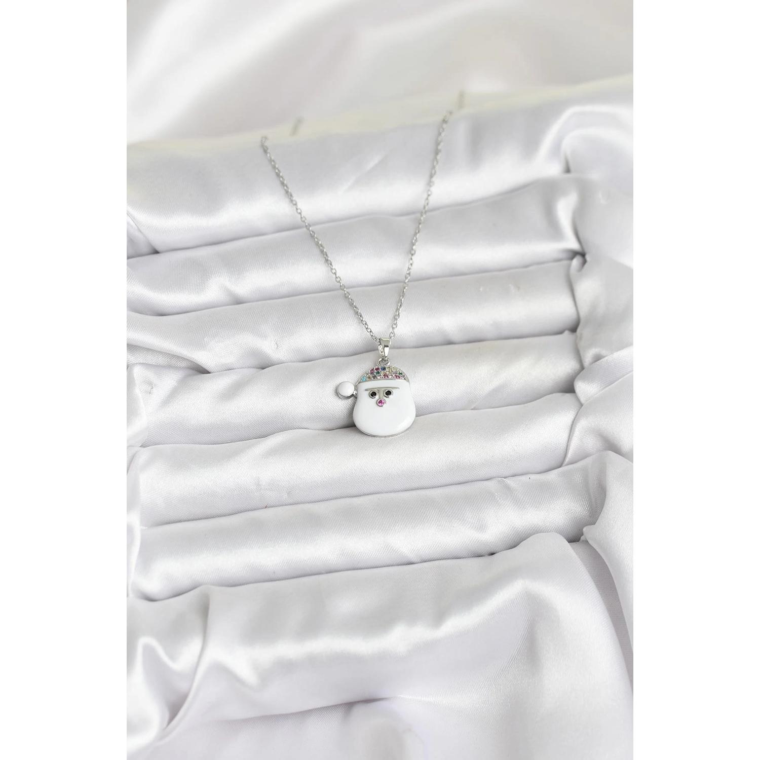316L Çelik Zincir Gümüş Renk Şapkalı Kardan Adam Kafası Model Yılbaşı Temalı Kadın Kolye