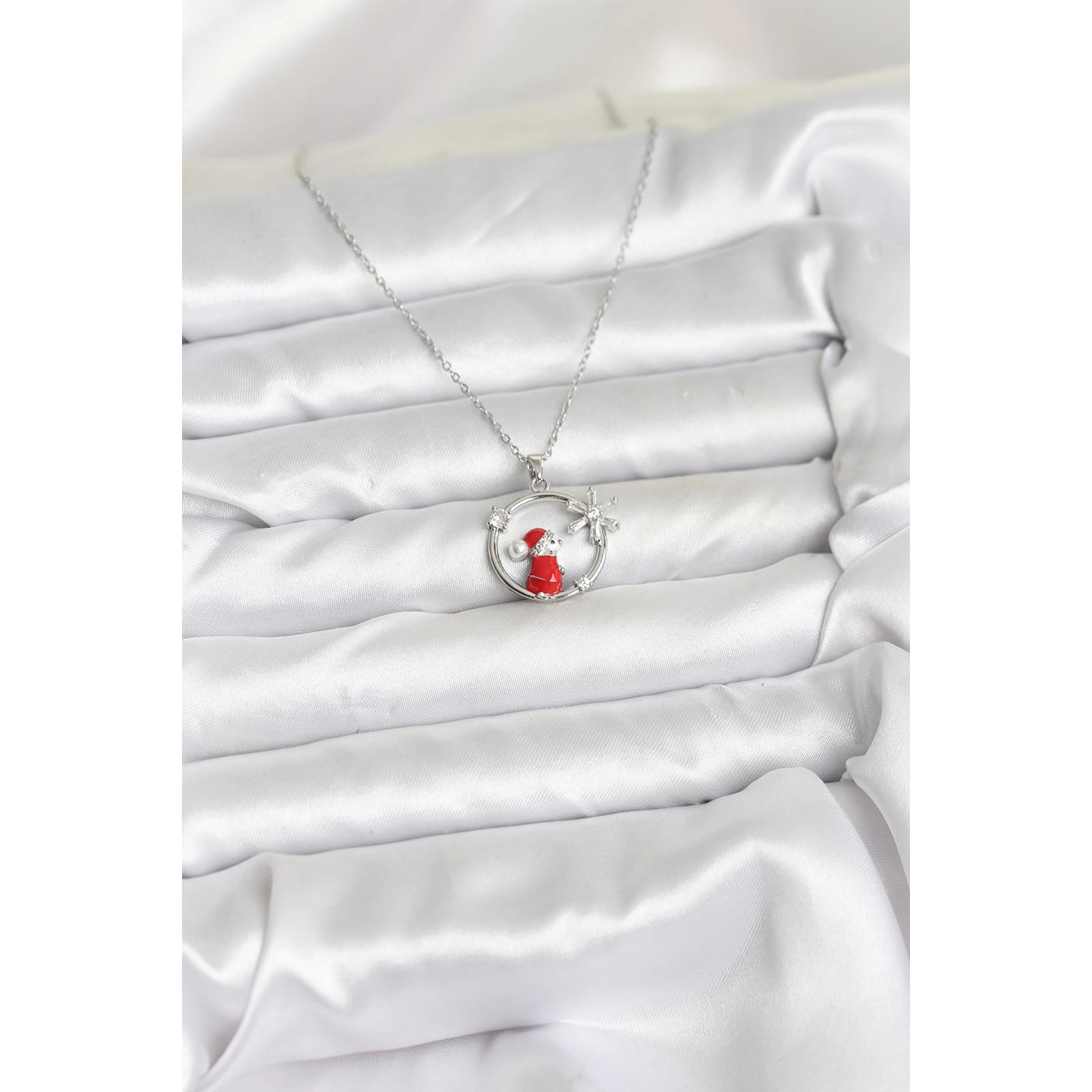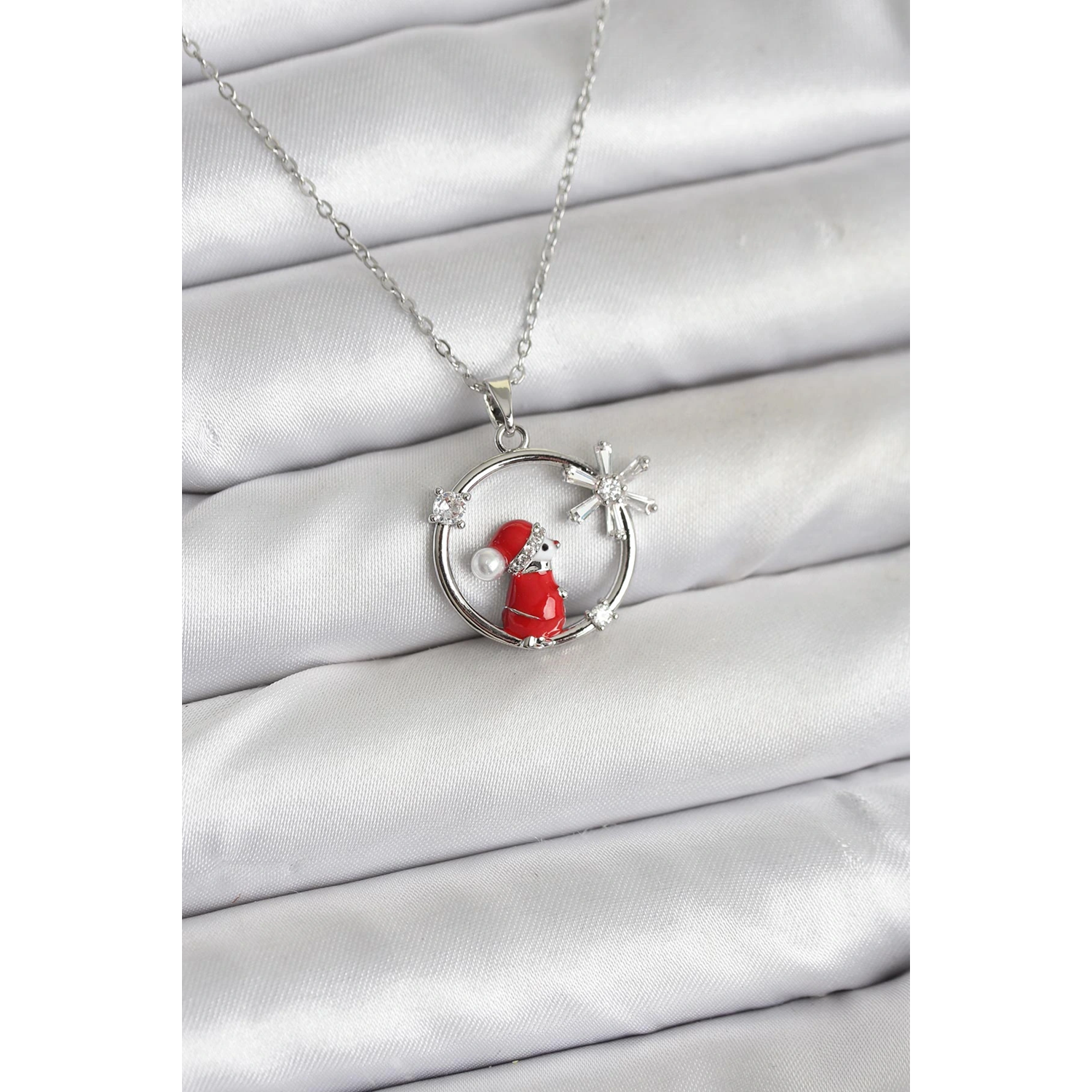316L Çelik Zincir Gümüş Zirkon Taşlı Yılbaşı Tema Kadın Kolye