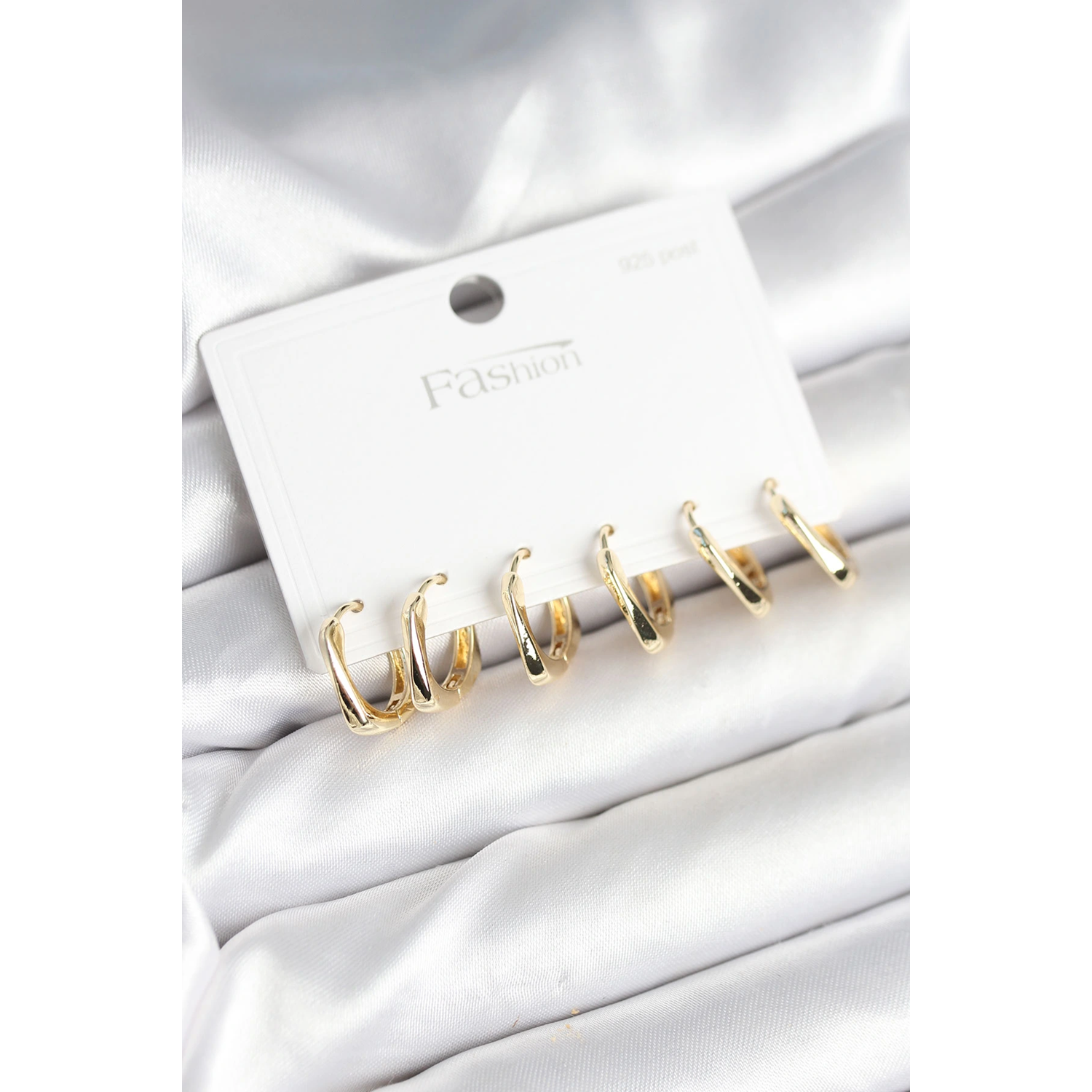 Gold Renk Pirinç Kare Halka Model 925 Ayar Gümüş Çivili Kadın Küpe Seti
