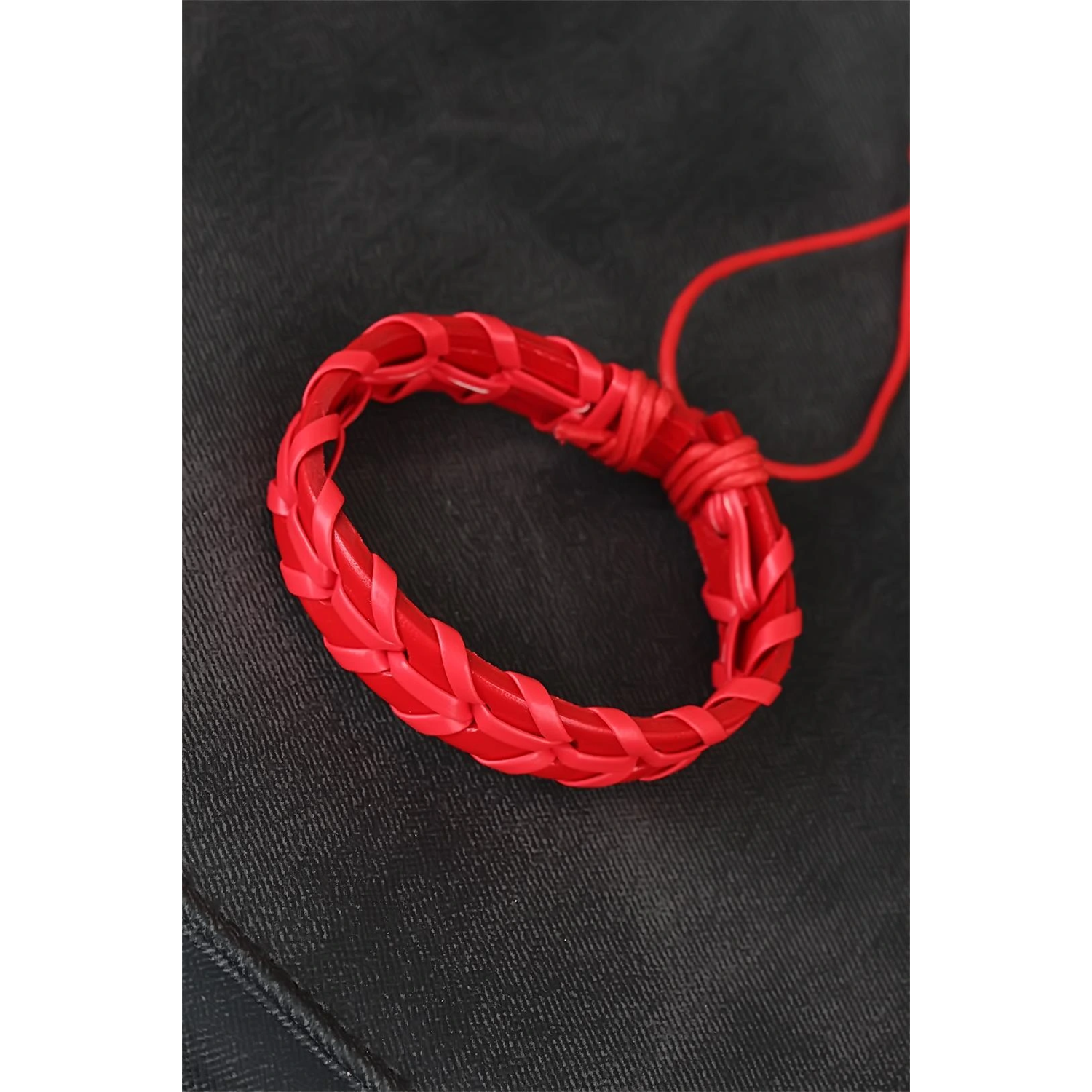 Şıklığa Kırmızı Örgü Deri Erkek Bileklik ile imzanızı atacaksınız.