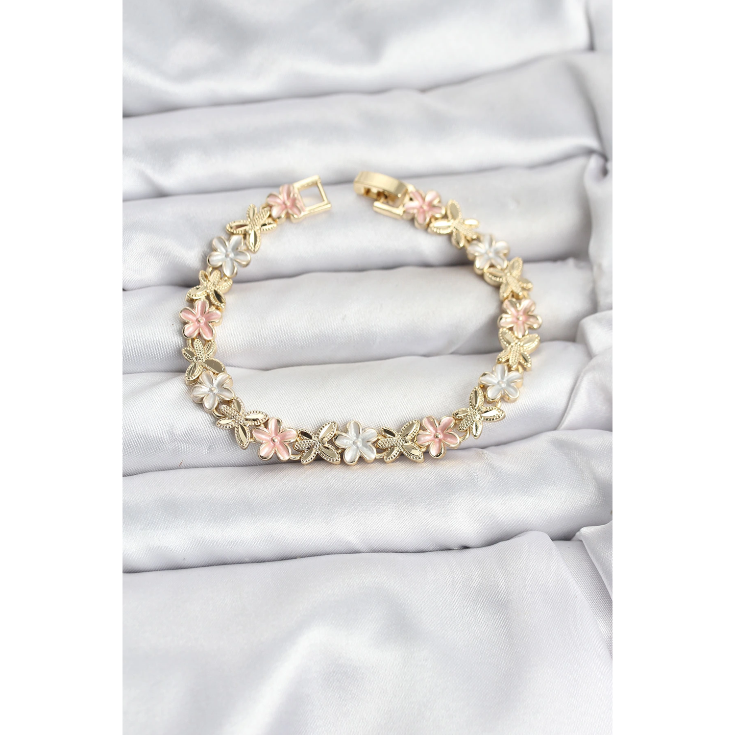 Lotus Model Pirinç Gold ve Pembe Renk Kadın Bileklik