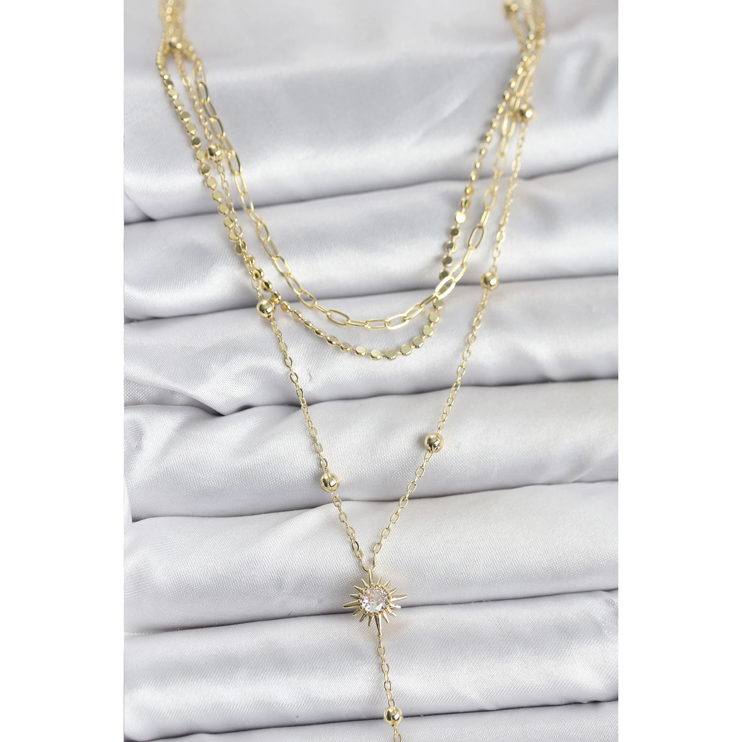 Pirinç Gold Renk Güneş Model Detaylı 3'lü Kombin Y Kadın Kolye