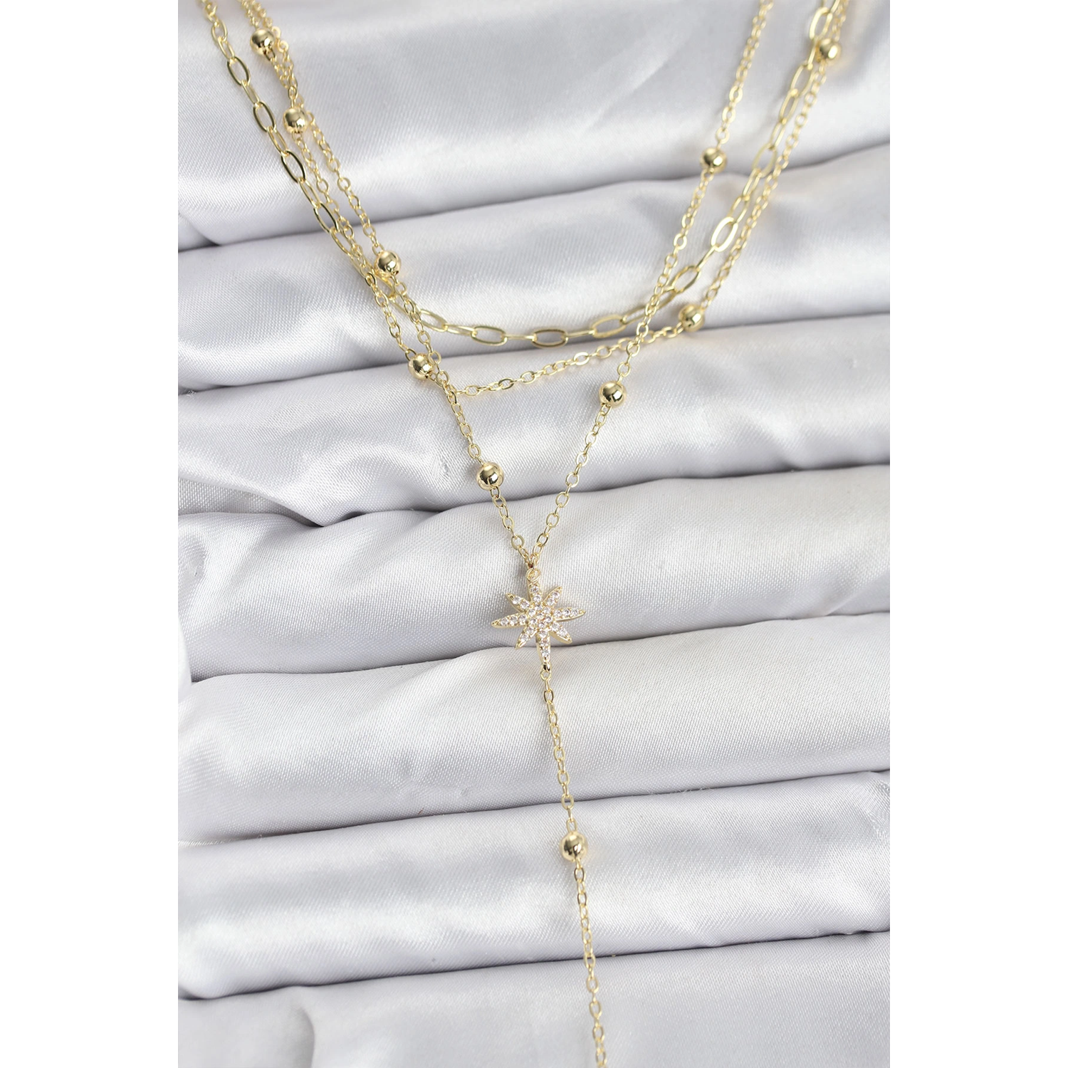Pirinç Gold Renk Kutup Yıldızı Detaylı 3'lü Kombin Kadın Kolye
