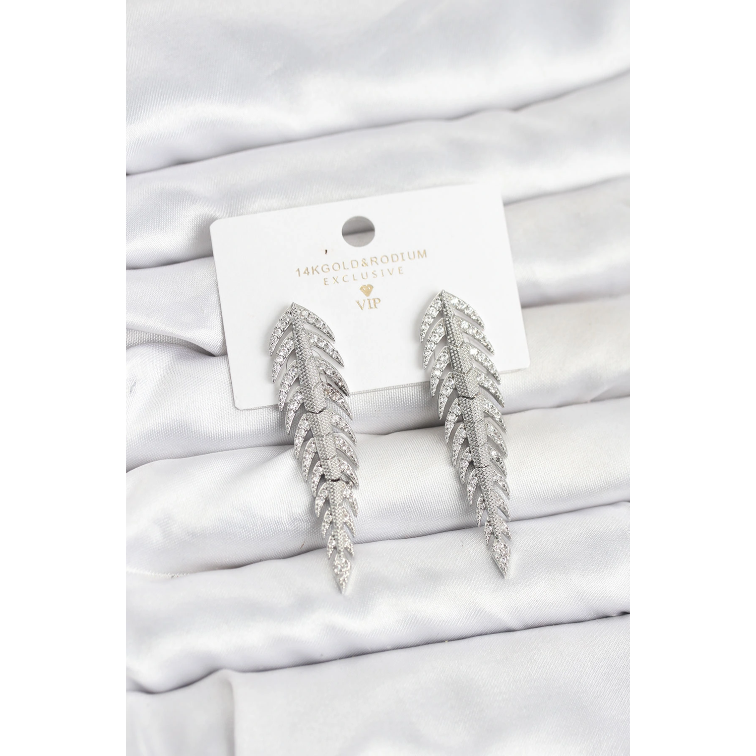 Pirinç Gümüş Renk Balık Sırtı Model Zirkon Taşlı Kadın Küpe