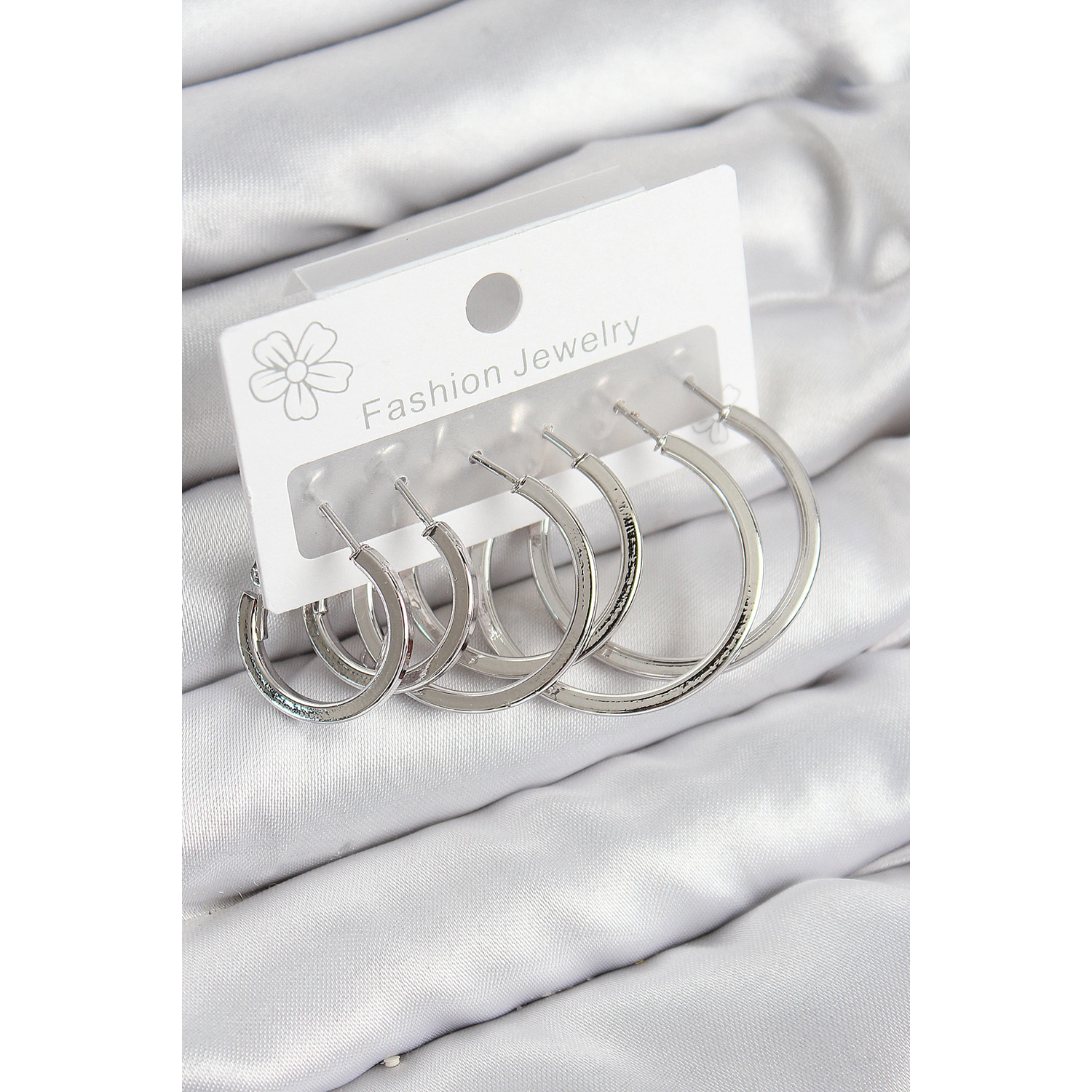 Pirinç Halka Model Gümüş Renk Kadın Set Küpe