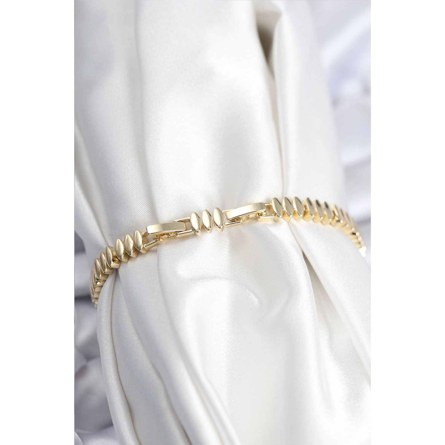 Pirinç VIP Seri Gold Renk Zirkon Taşlı Arpa Model Kadın Bileklik