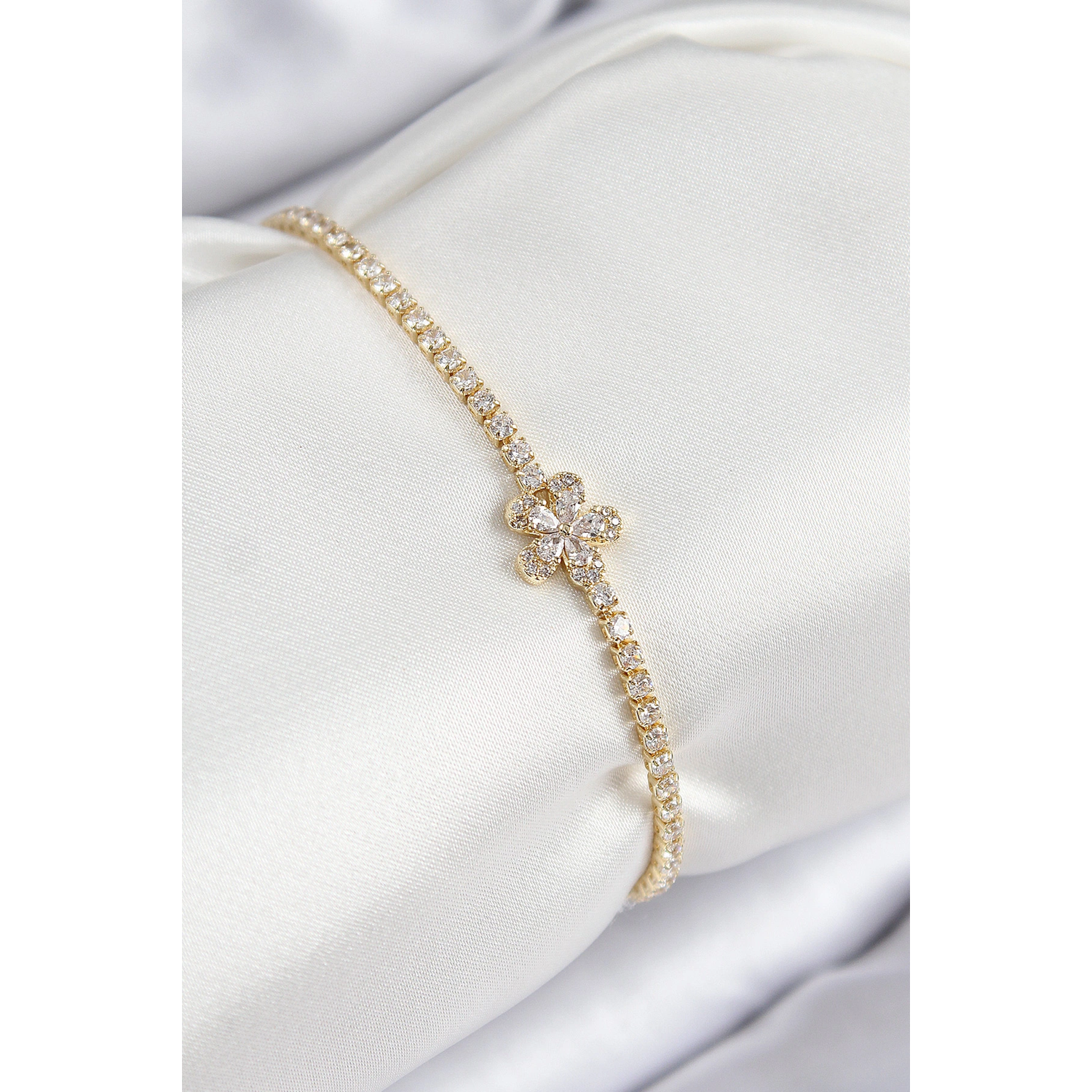 Pirinç Zirkon Taşlı Çiçek Model Gold Renk Kadın Bileklik
