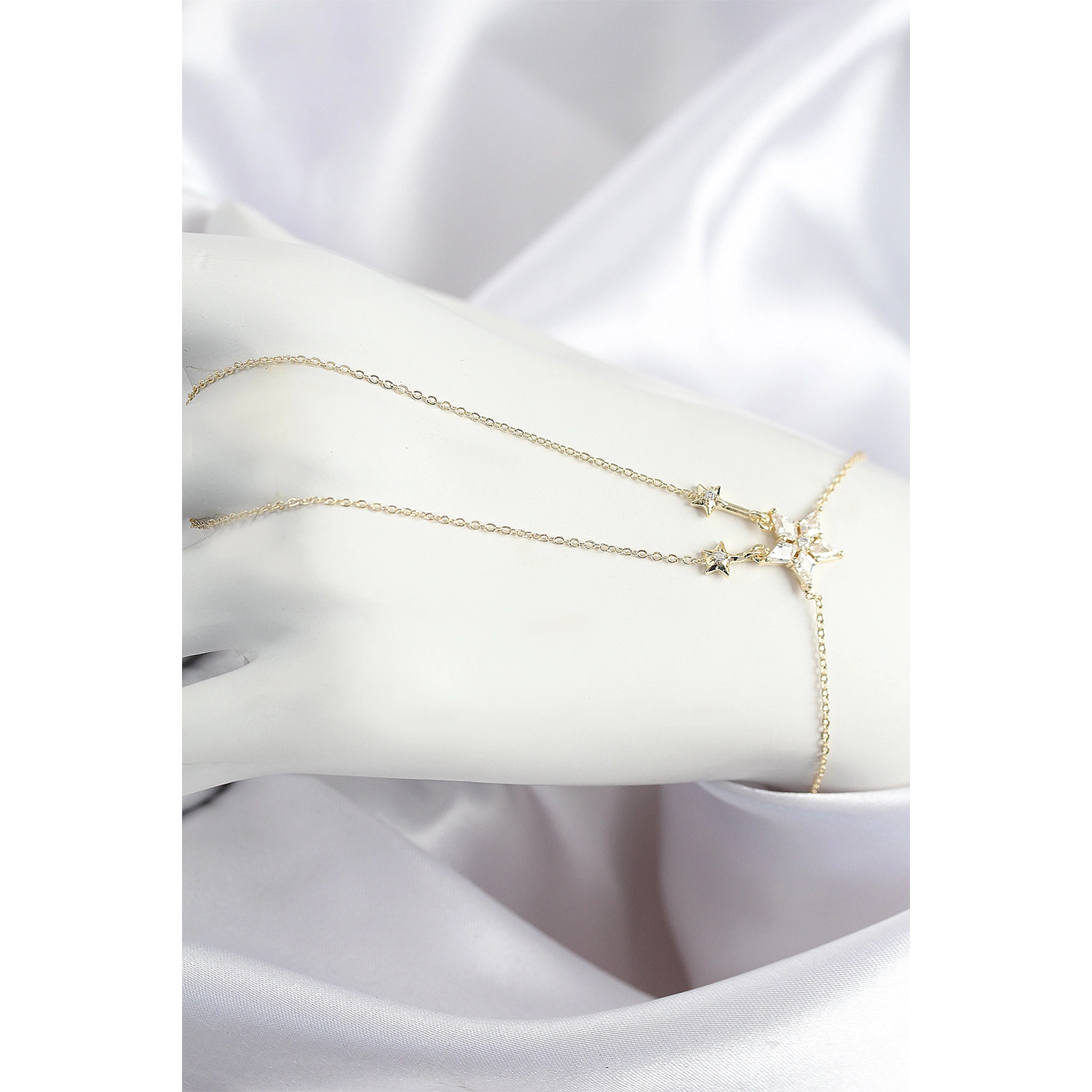 Pirinç Zirkon Taşlı Yıldız Model Gold Renk Şahmeran