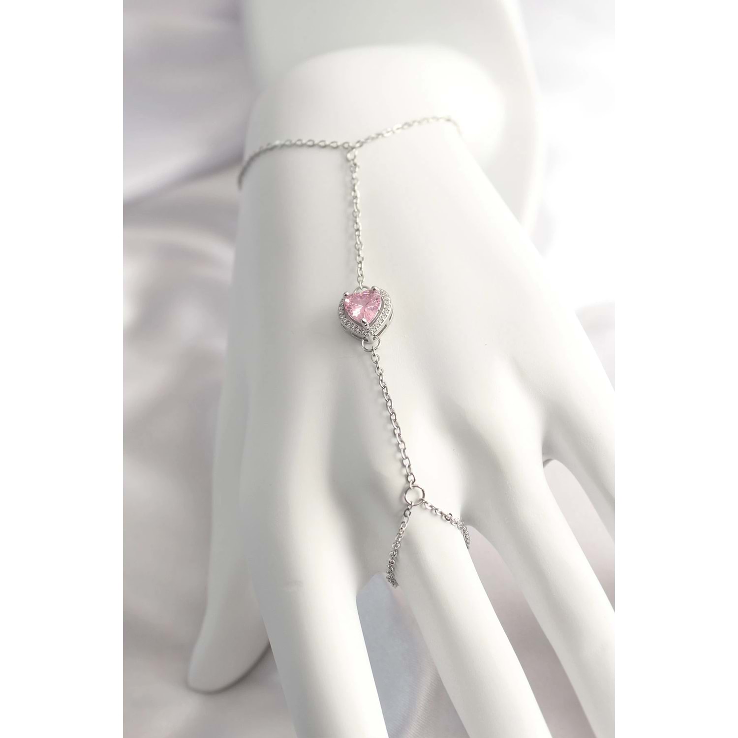 316L Çelik Gümüş Renk Pembe Zirkon Taşlı Kalp Şahmeran