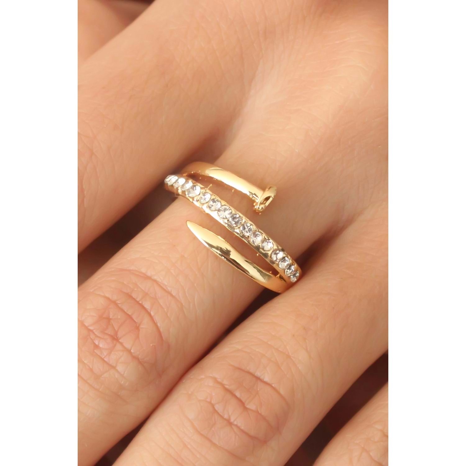 Gold Renk Taşlı Çivi Ayarlanabilir Kadın Yüzük