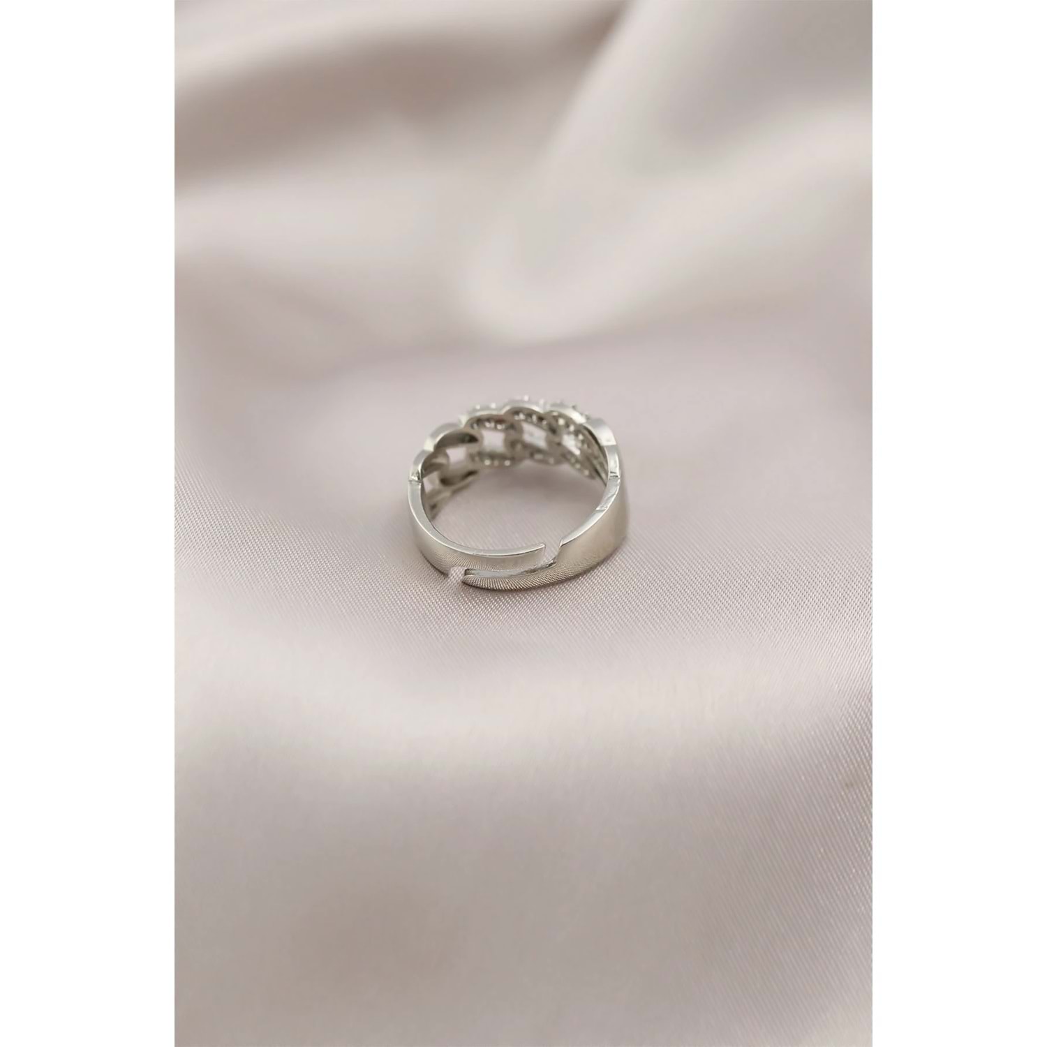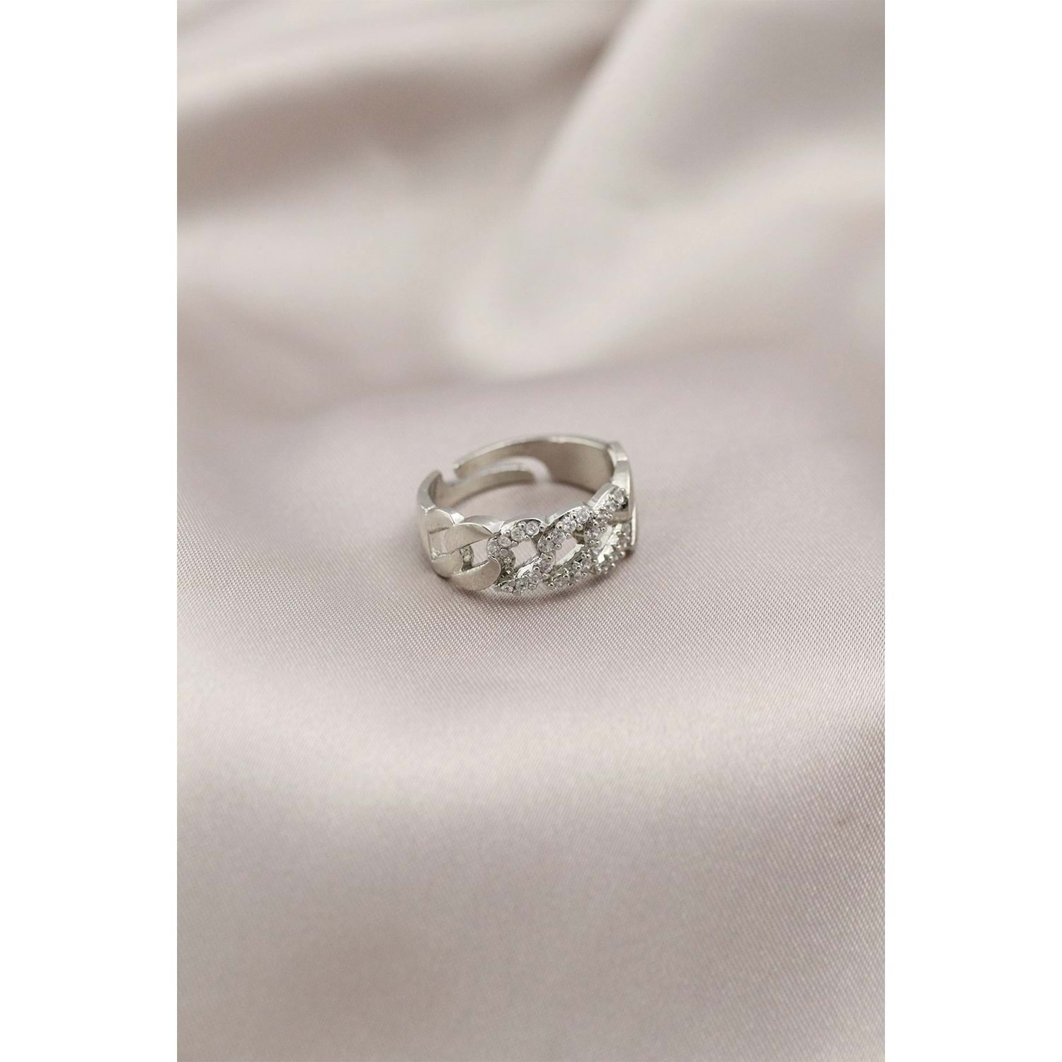 Gümüş Renk Metal Zincir Model Taşlı Kadın Yüzük