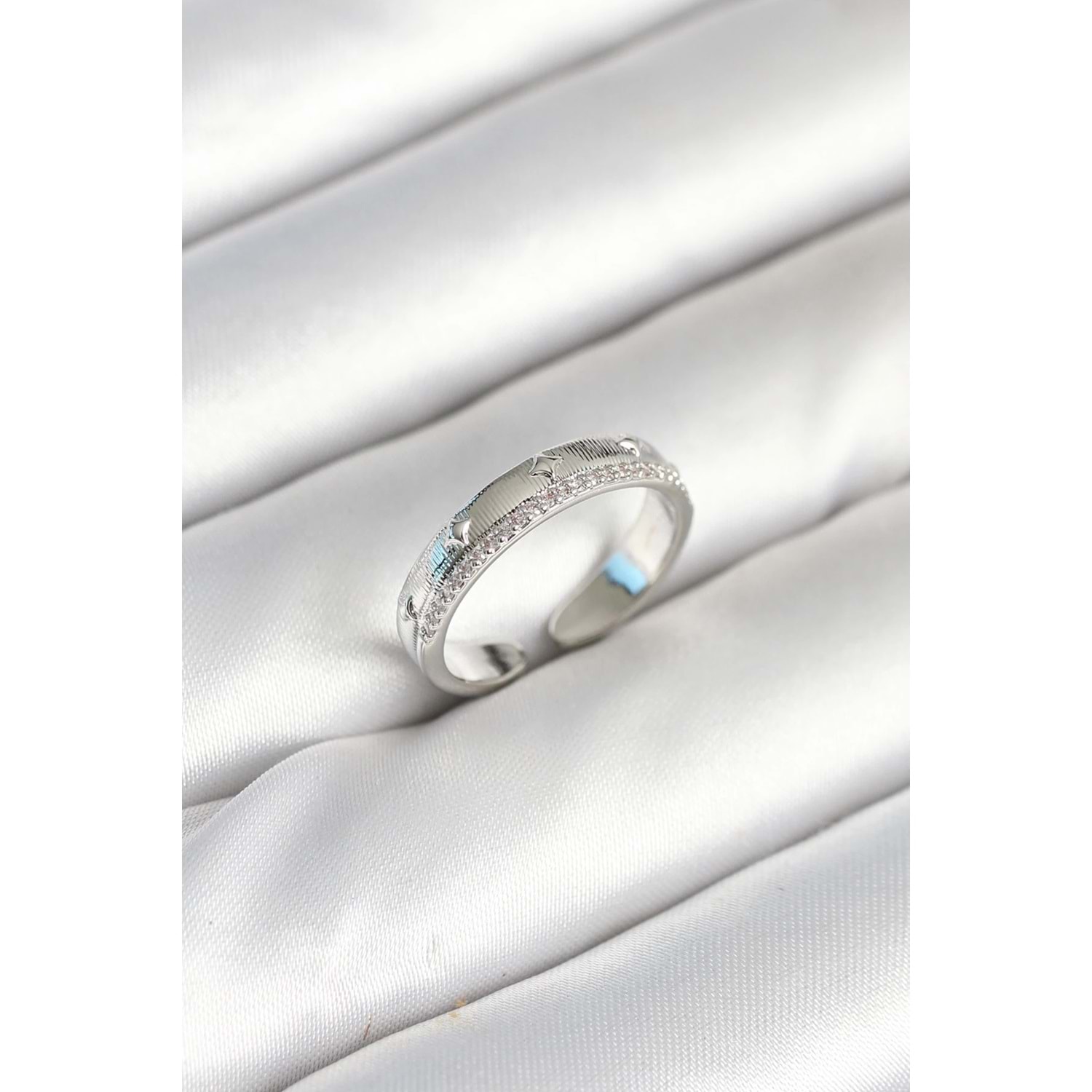Gümüş Renk Şerit Zirkon Taşlı Kadın Yüzük