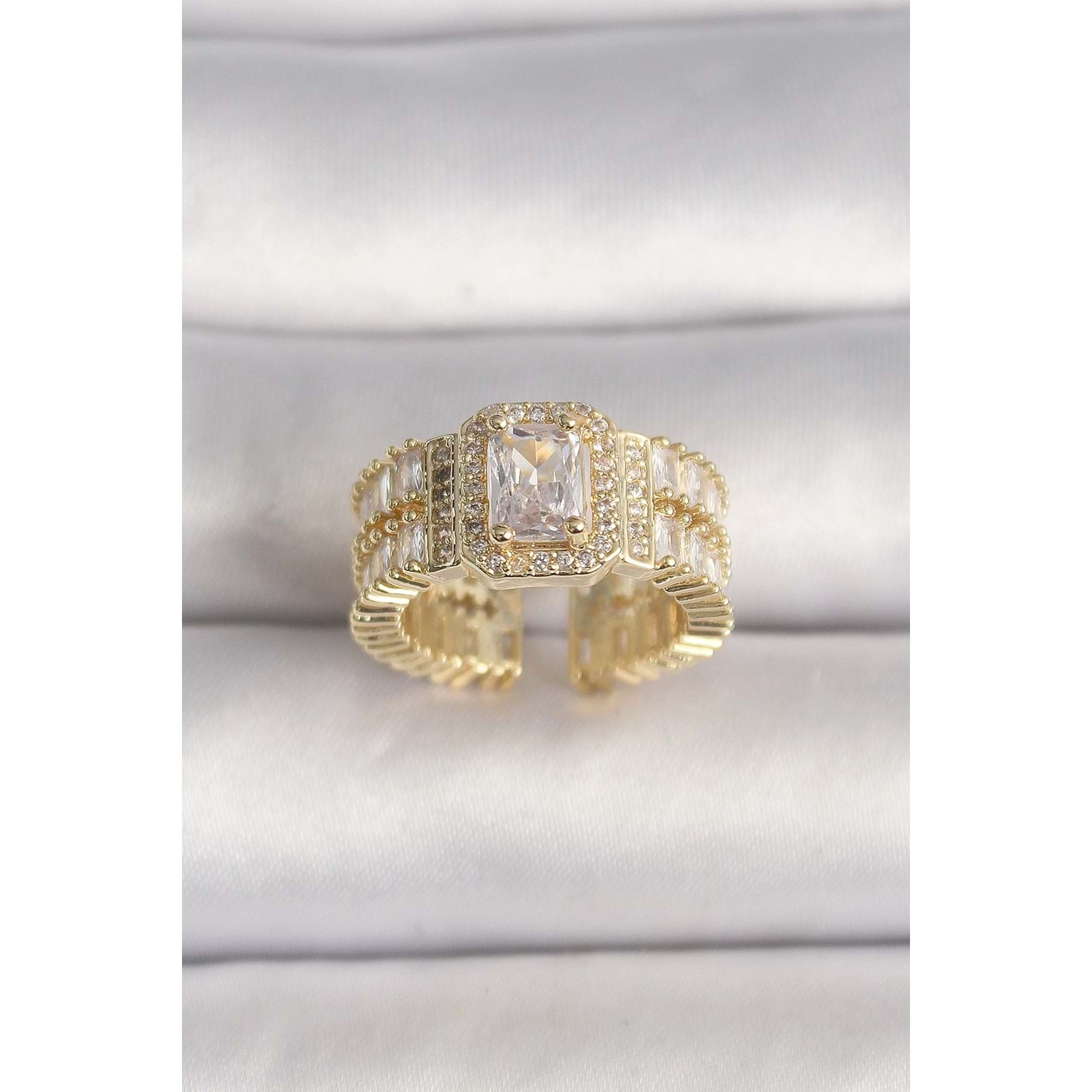 Pirinç Gold Renk Ayarlanabilir Baget Zirkon Taş Model Kadın Yüzük