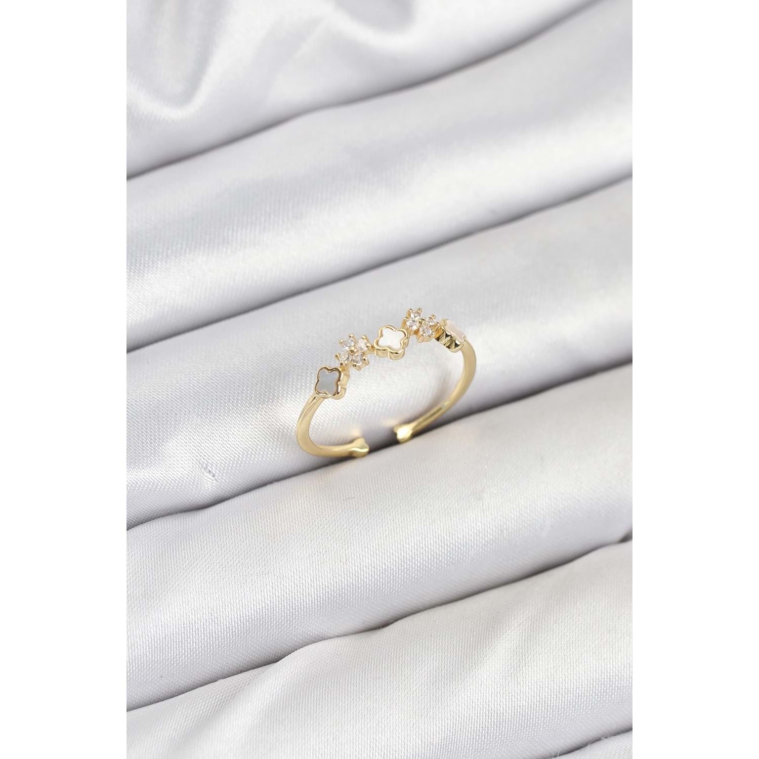Pirinç Gold Renk Minimal Yonca Detaylı Kadın Yüzük