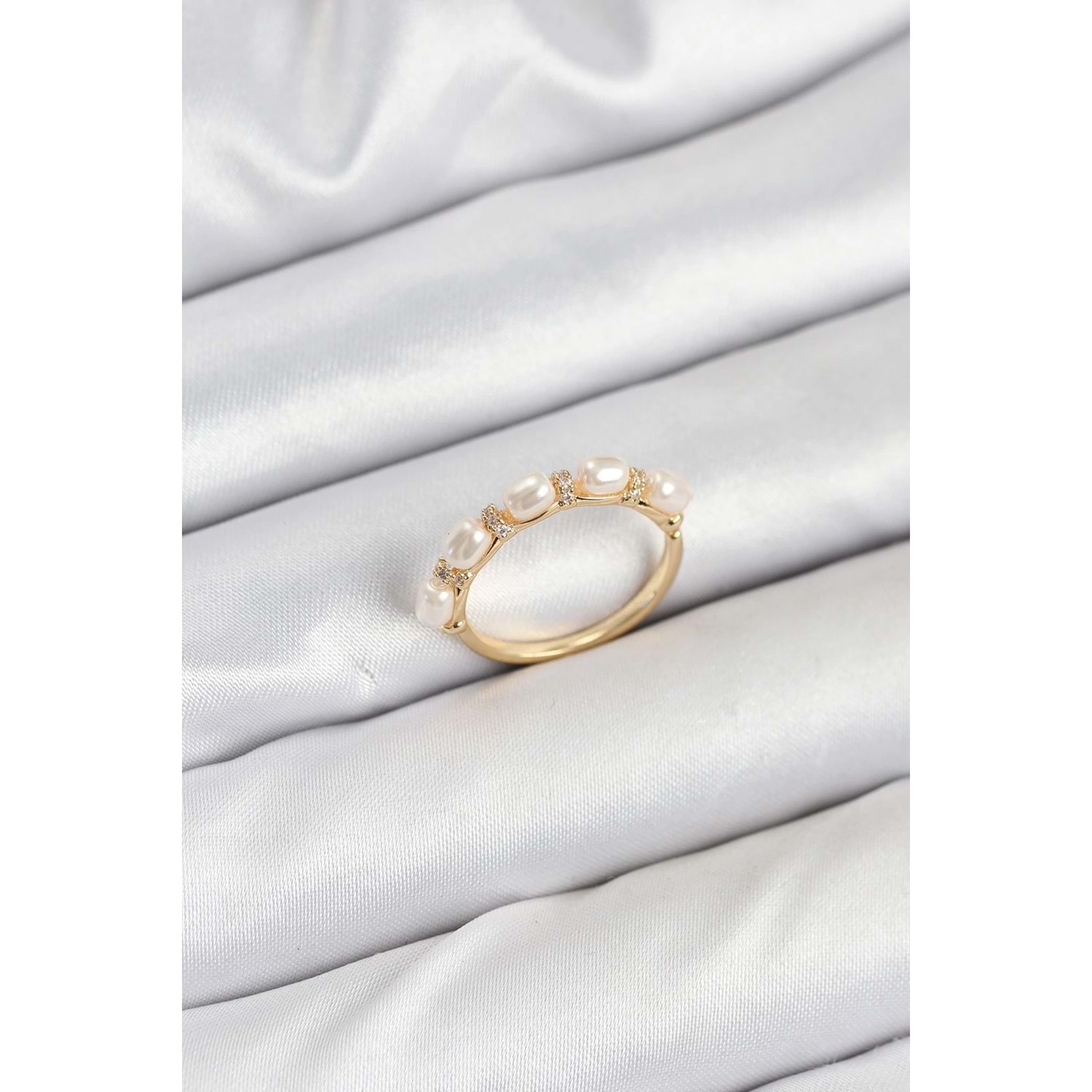 Pirinç Gold Renk Sıralı İncili Kadın Yüzük