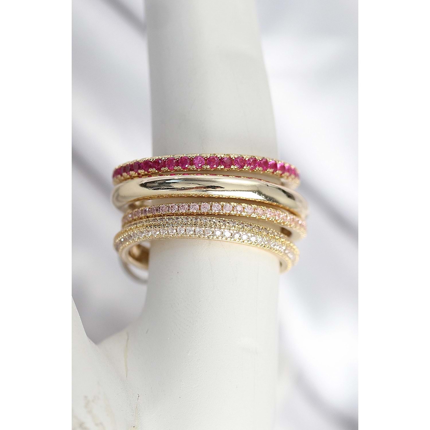 Pirinç Gold Renk Zirkon Taşlı 4'Lü Kadın Yüzük