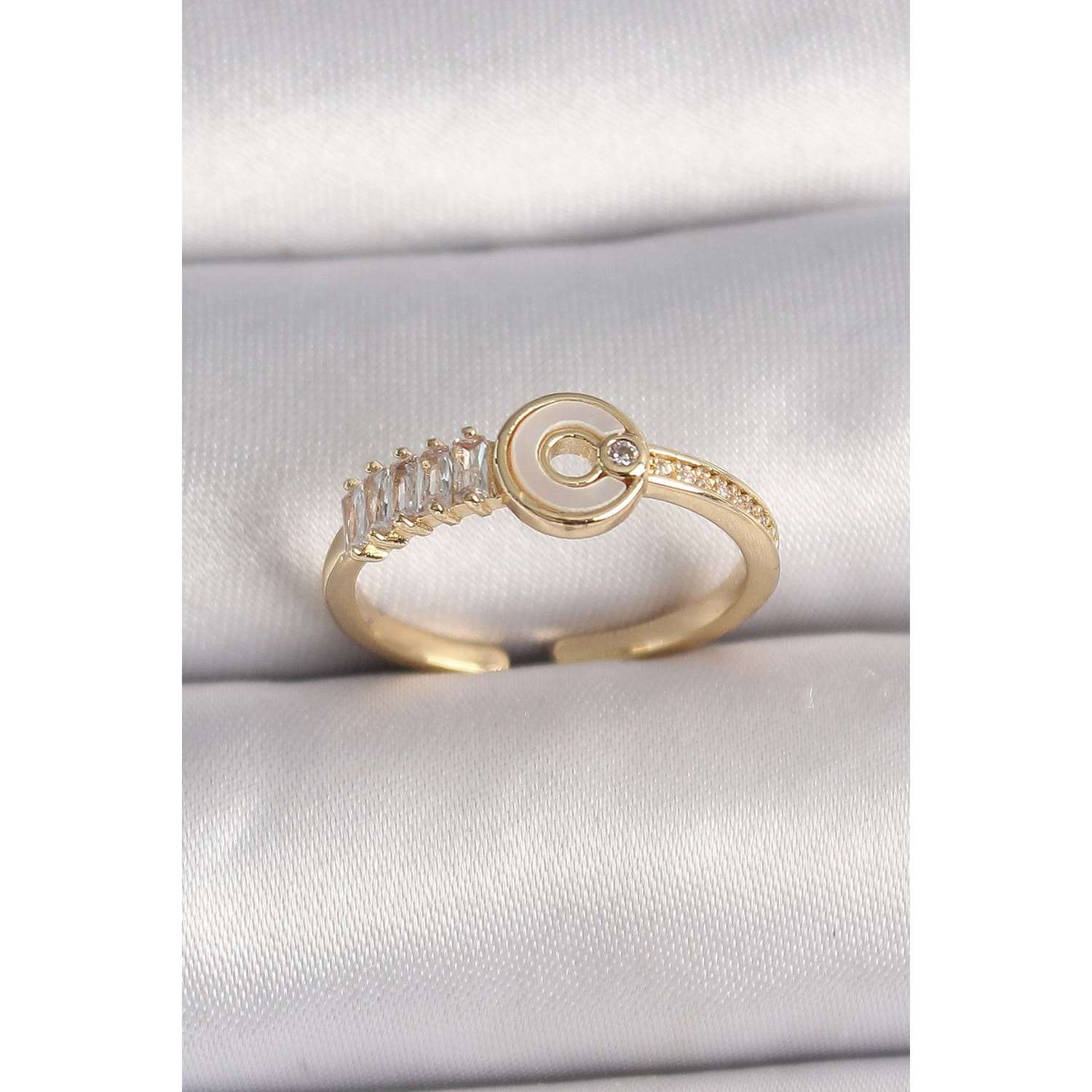 Pirinç Gold Renk Zirkon Taşlı Ayarlanabilir Kadın Yüzük