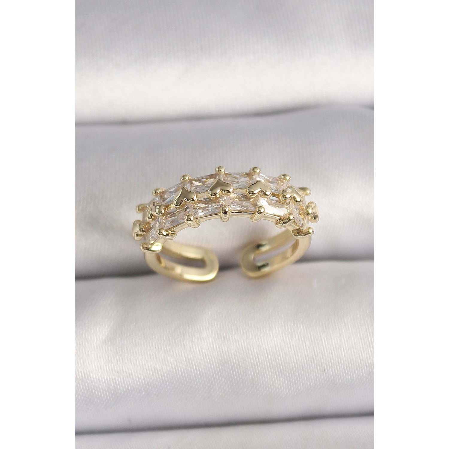 Pirinç Gold Renk Zirkon Taşlı Ayarlanabilir Yüzük