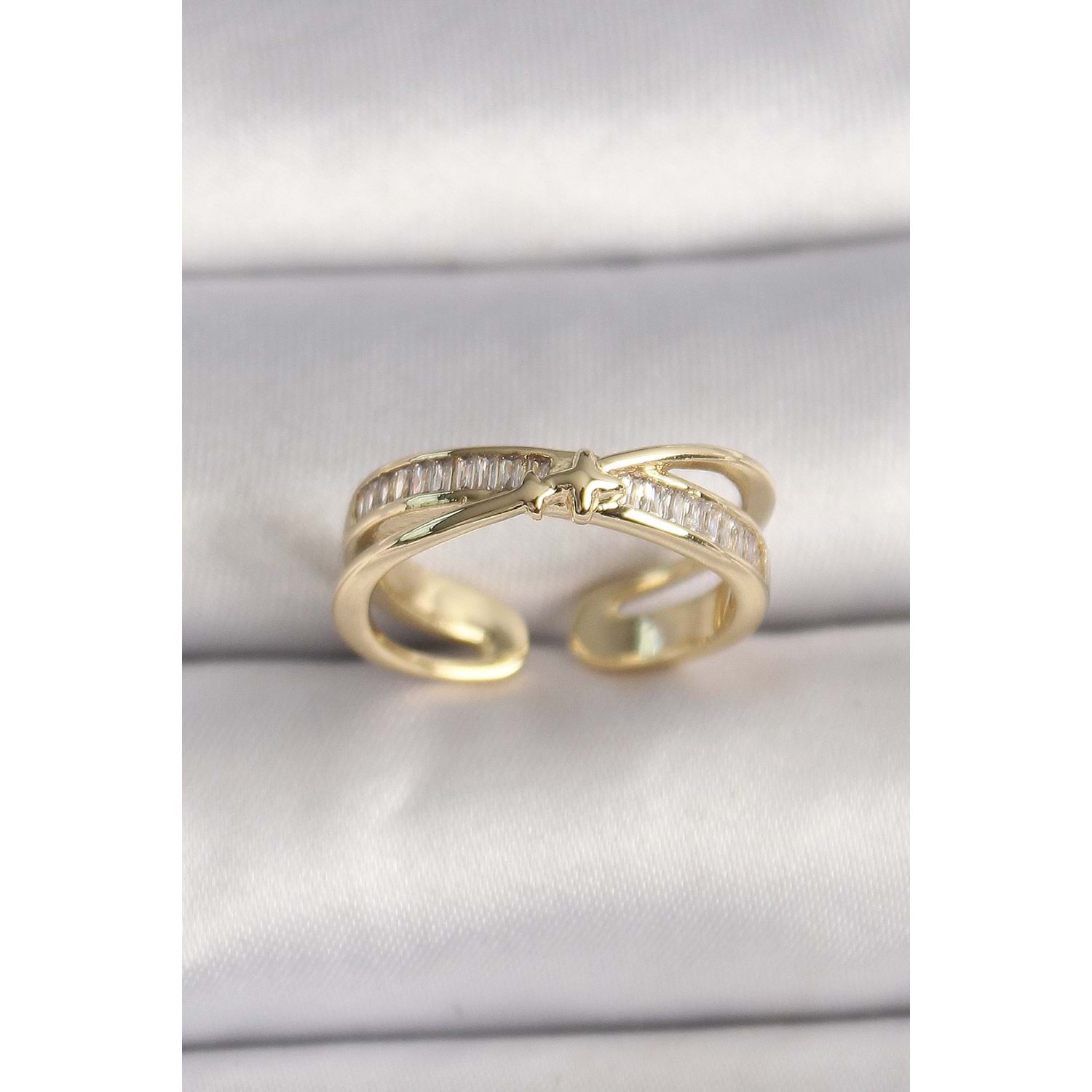 Pirinç Gold Renk Zirkon Taşlı Yıldız Detaylı Ayarlanabilir Kadın Yüzük