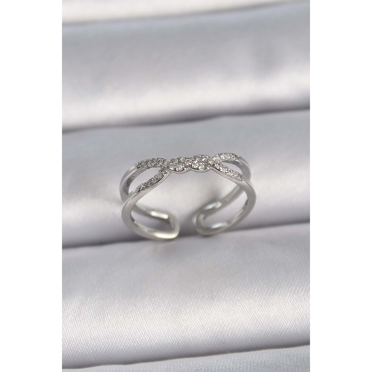 Pirinç Gümüş Renk Ayarlanabilir Zirkon Taşlı Sarmal Model Kadın Yüzük