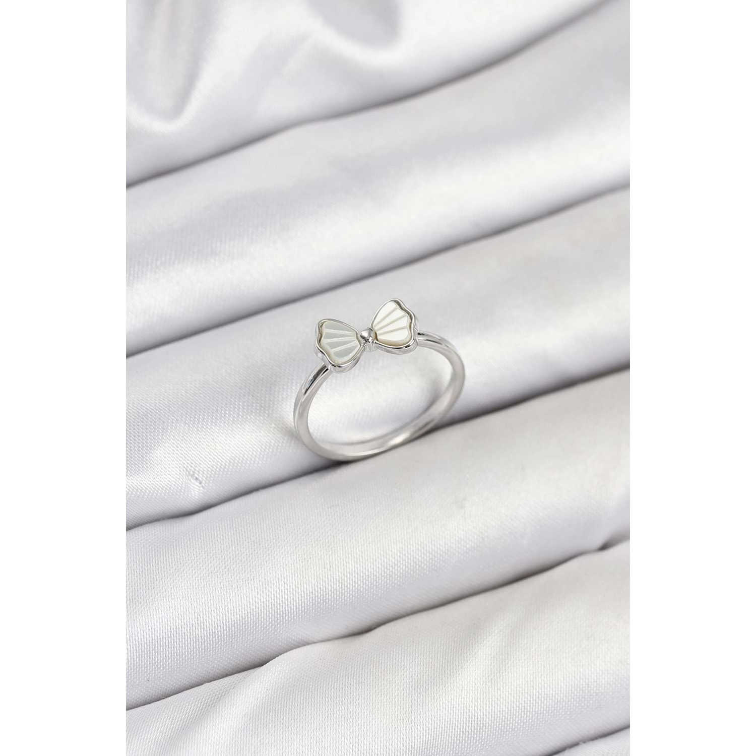 Pirinç Gümüş Renk Fiyonk Model Kadın Yüzük