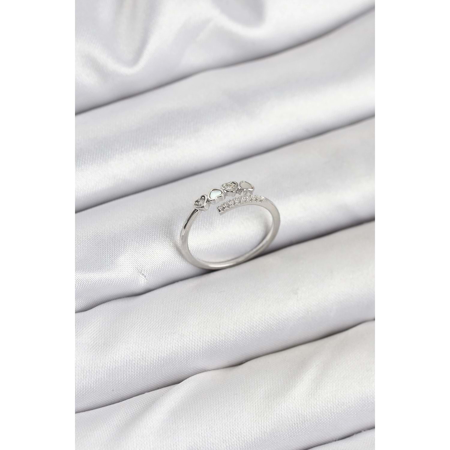 Pirinç Gümüş Renk Kalpli Detaylı Zirkon Taşlı Kadın Yüzük