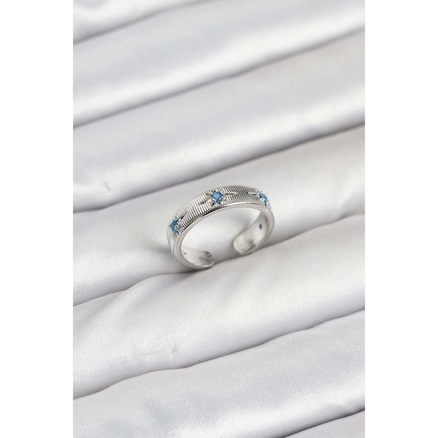 Pirinç Gümüş Renk Mavi Zirkon Taşlı Kutup Yıldızı Model Kadın Yüzük