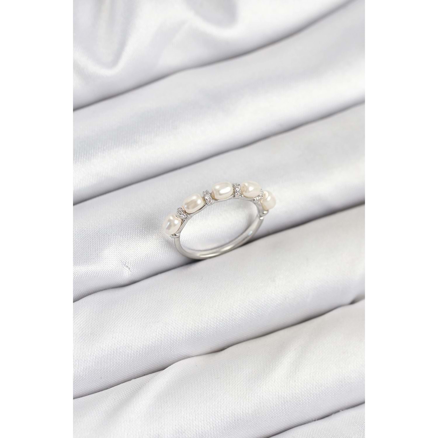 Pirinç Gümüş Renk Sıralı İncili Kadın Yüzük