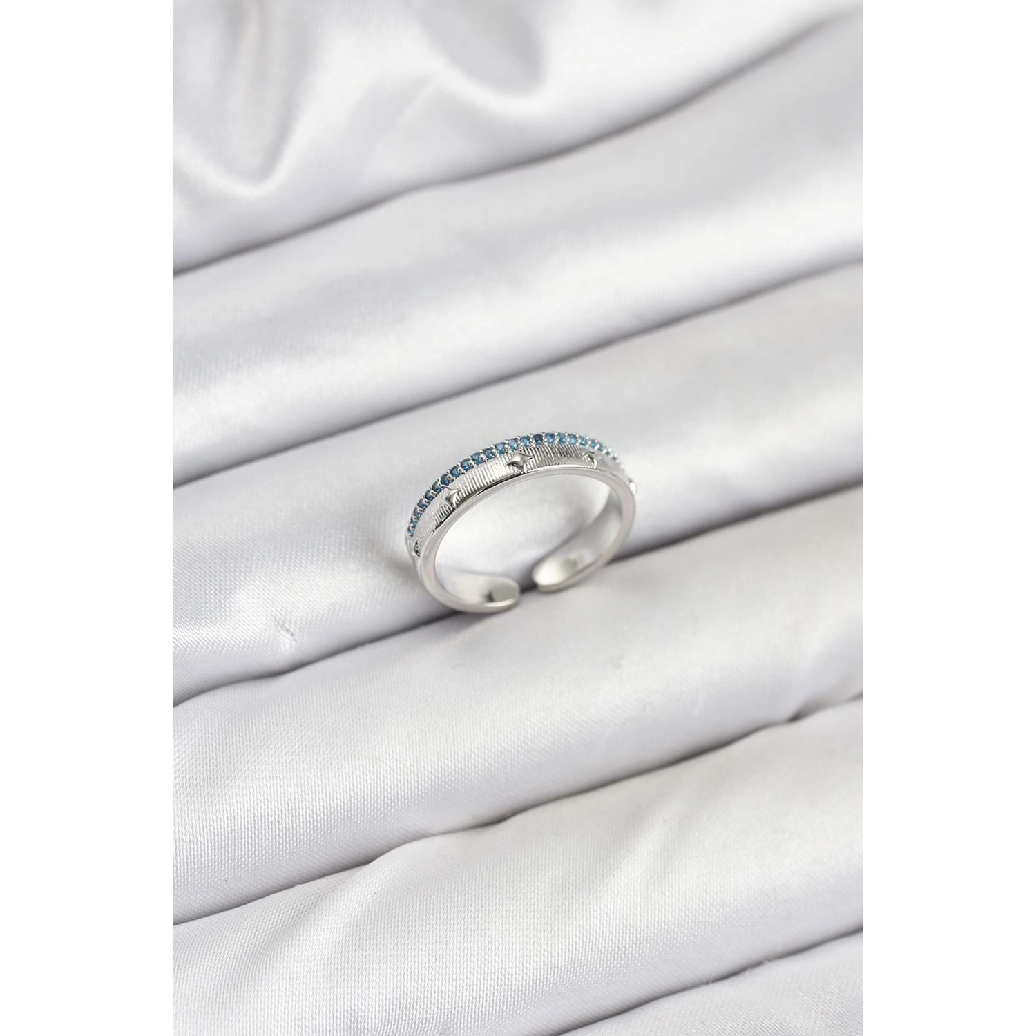 Pirinç Gümüş Renk Sıralı Zirkon Taşlı Kutup Yıldızı Model Kadın Yüzük
