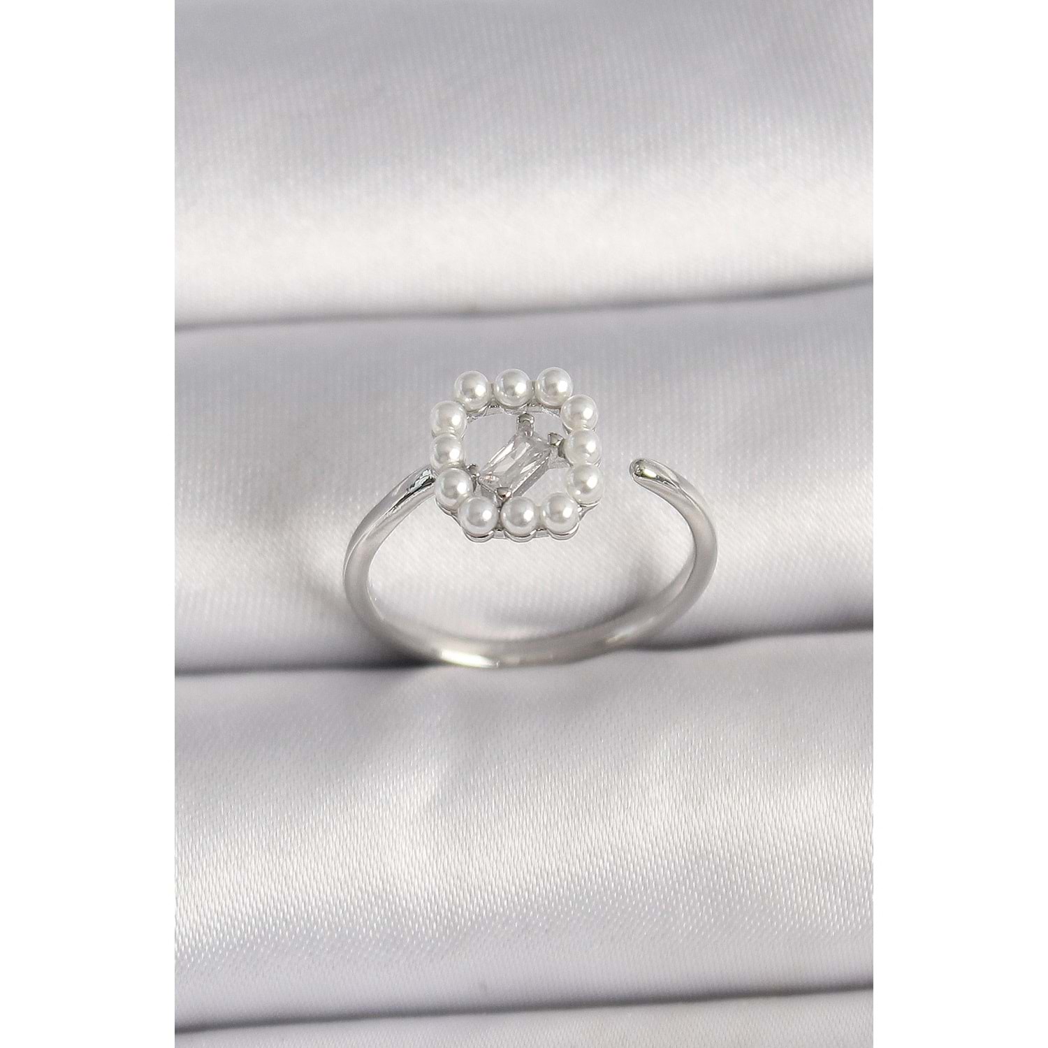 Pirinç Gümüş Renk Zirkon Taş Detaylı İncili Ayarlanabilir Yüzük