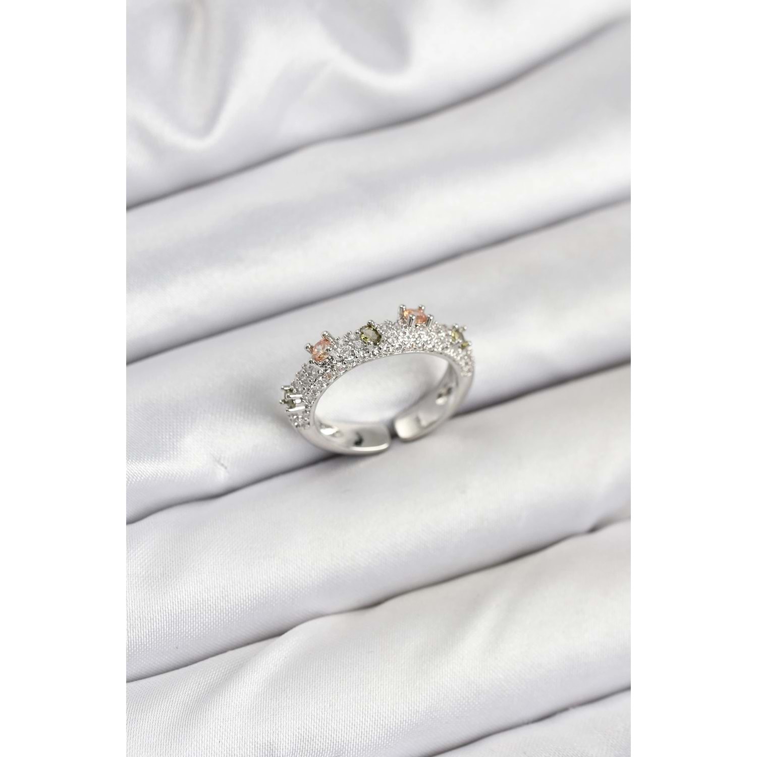 Pirinç Gümüş Renk Zirkon Taşlı Vintage Kadın Yüzük