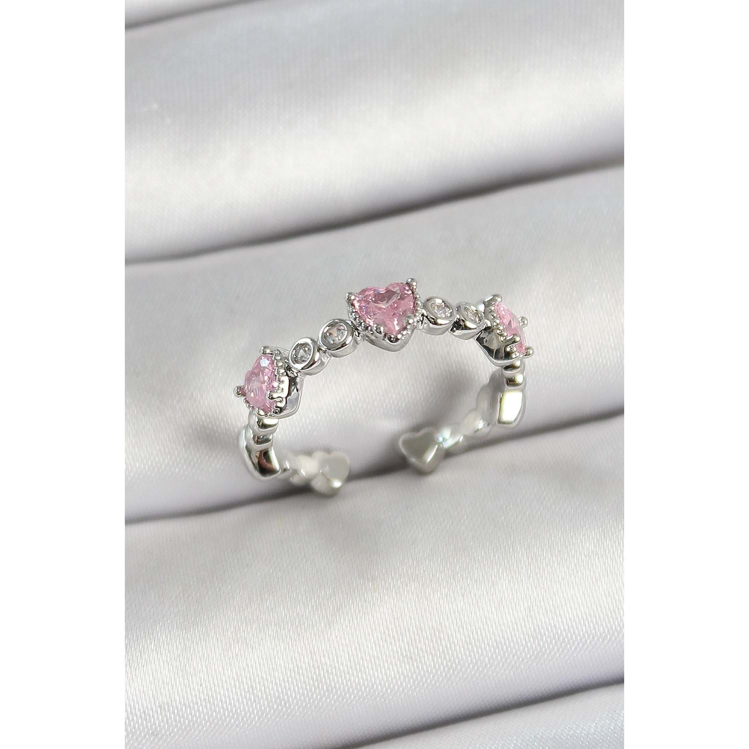 Pirinç Sıralı Kalp Figürlü Zirkon Taşlı Gümüş Renk Ayarlanabilir Kadın Yüzük
