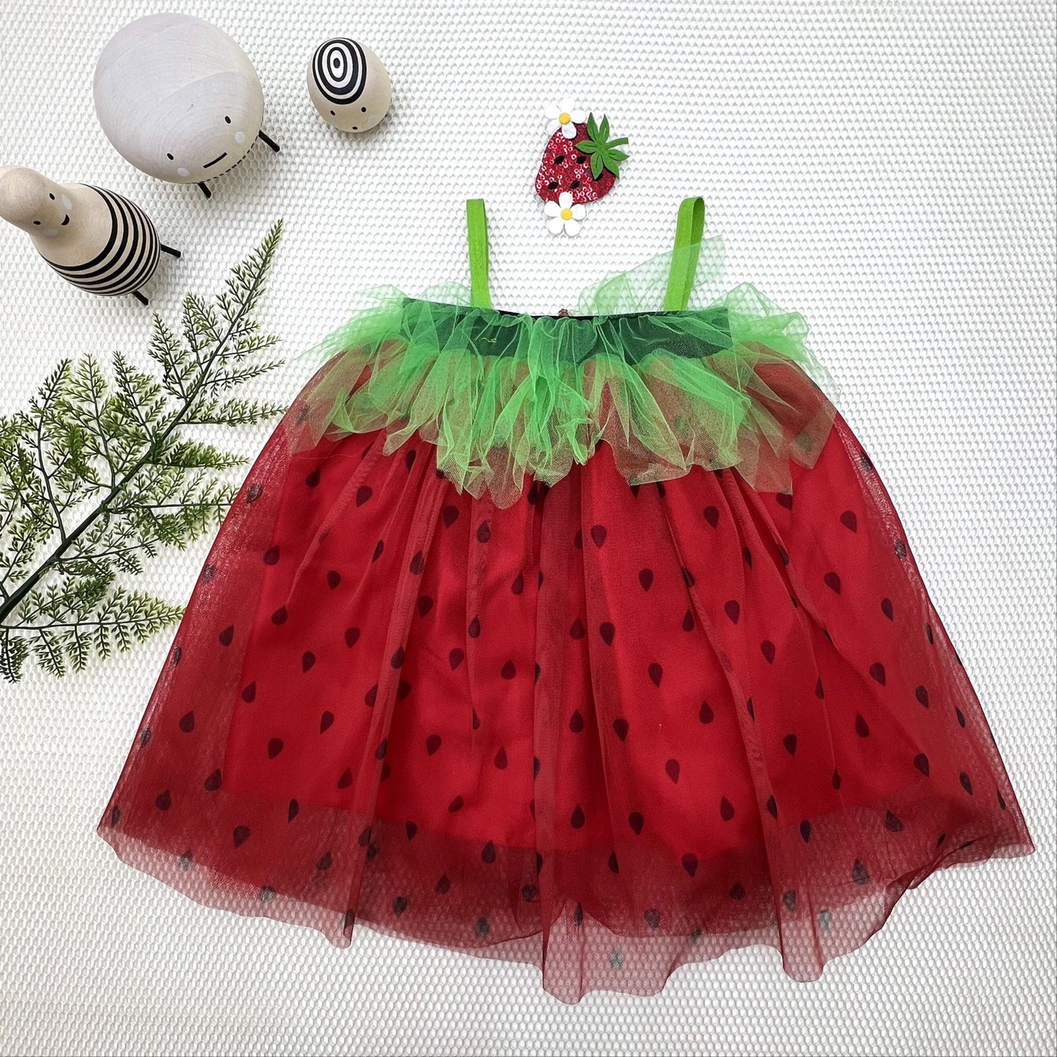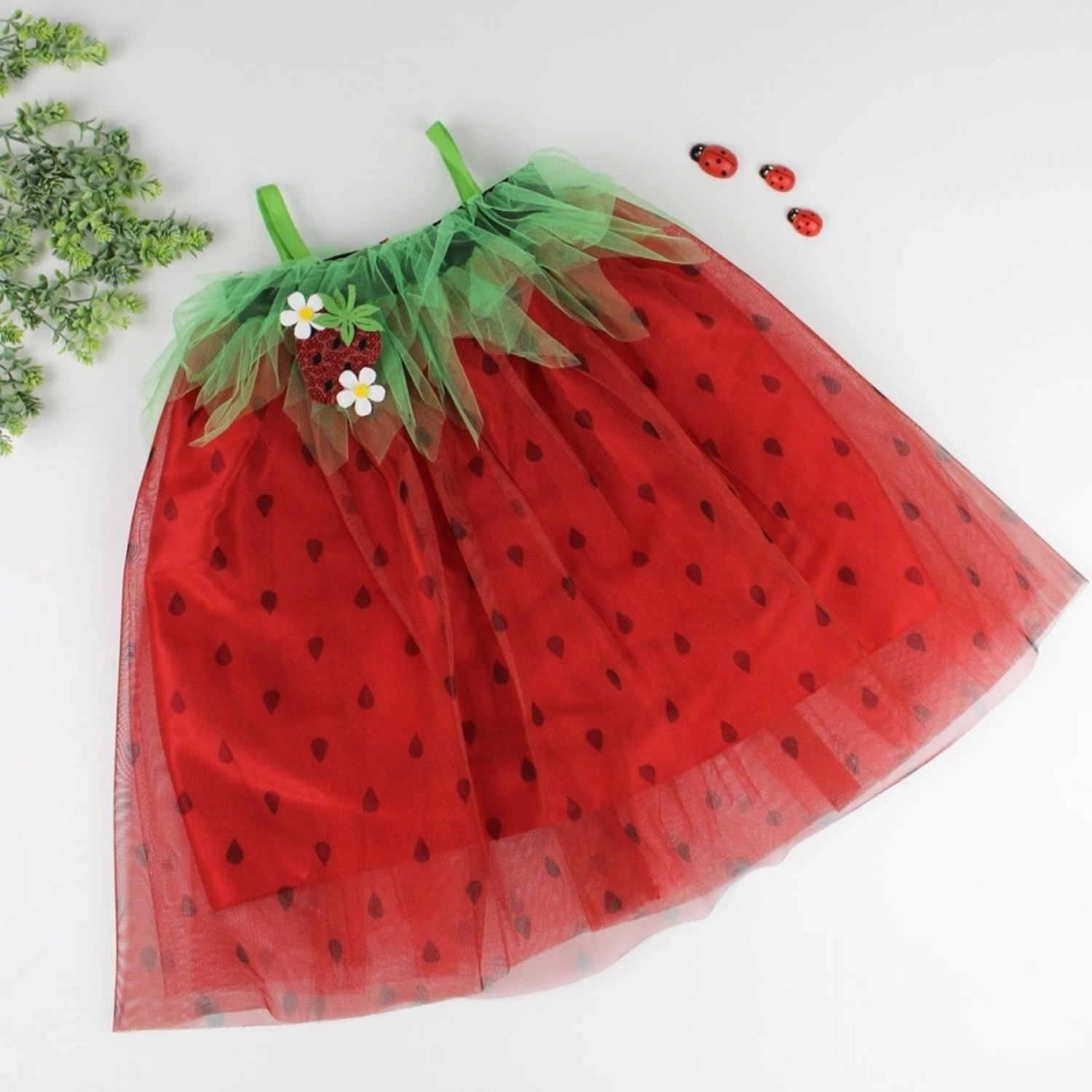 2-3-4 Yaş Askılı Çilek Kostüm Kız Çocuk Elbise