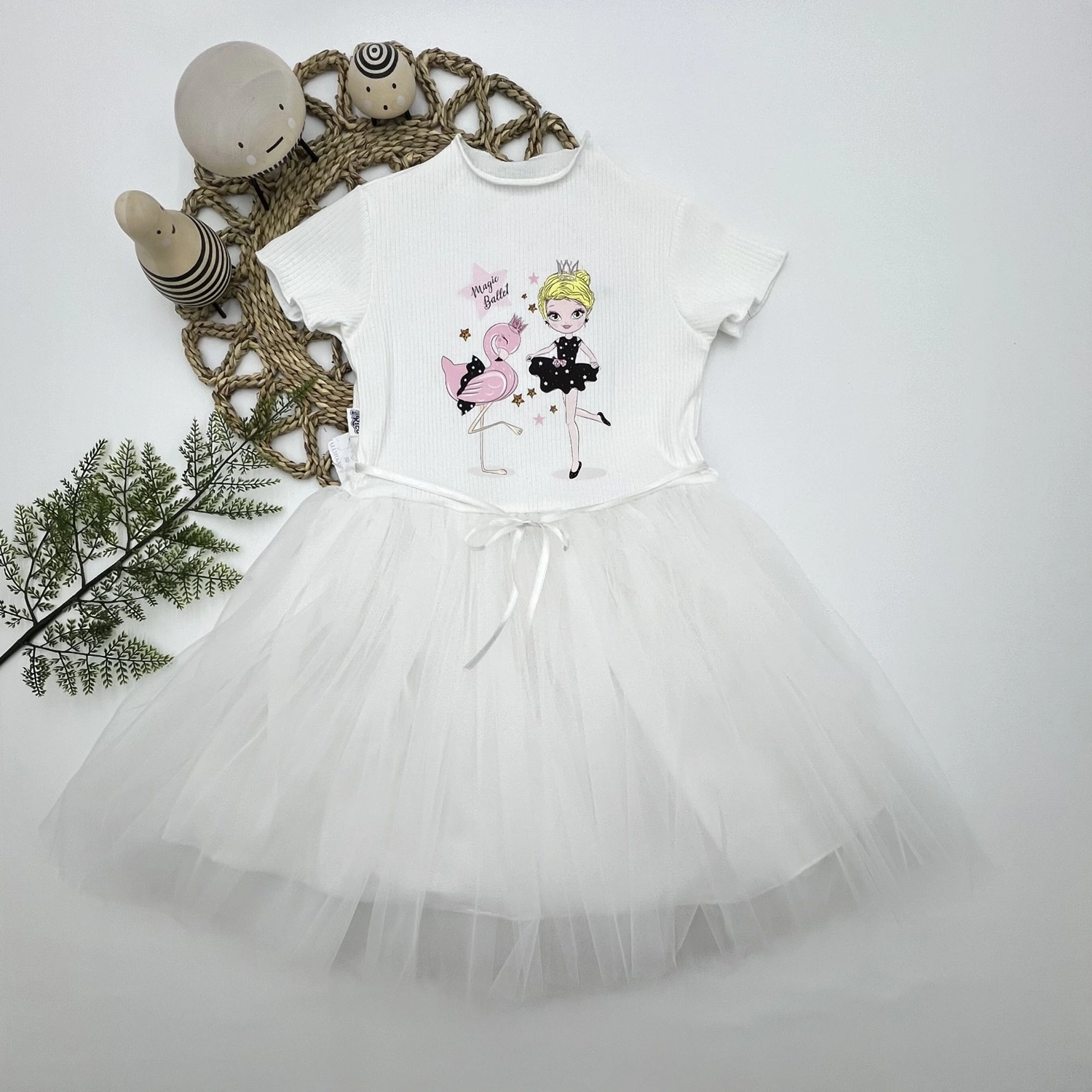 5-6-7 Yaş Flamingo Balerin Kız Baskılı Kurdela Kuşaklı Astarlı Kız Çocuk Tütü Elbise