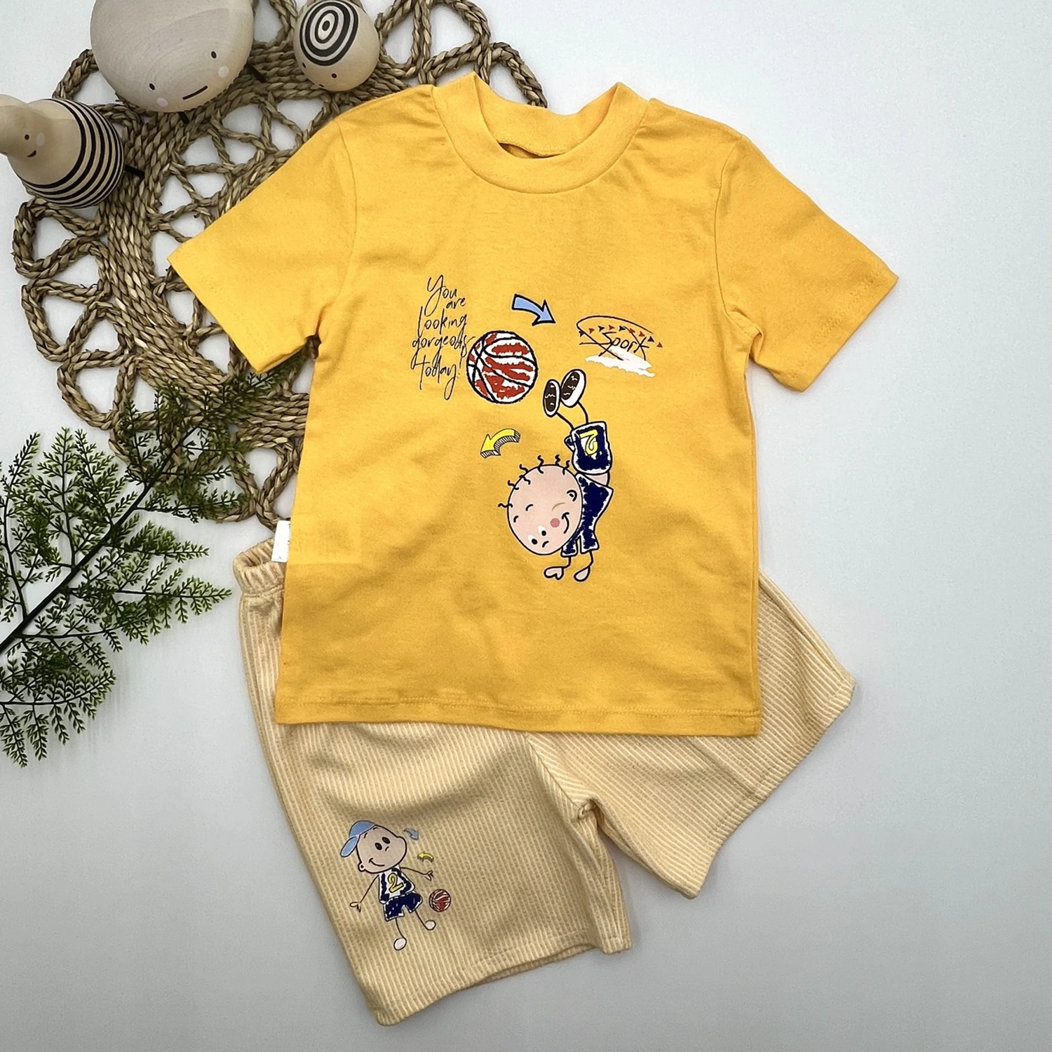 1-2-3 Yaş Topçu Erkek Çocuk Baskılı Şortlu Kısa Kollu Tişört 2li Erkek Bebek Takımı