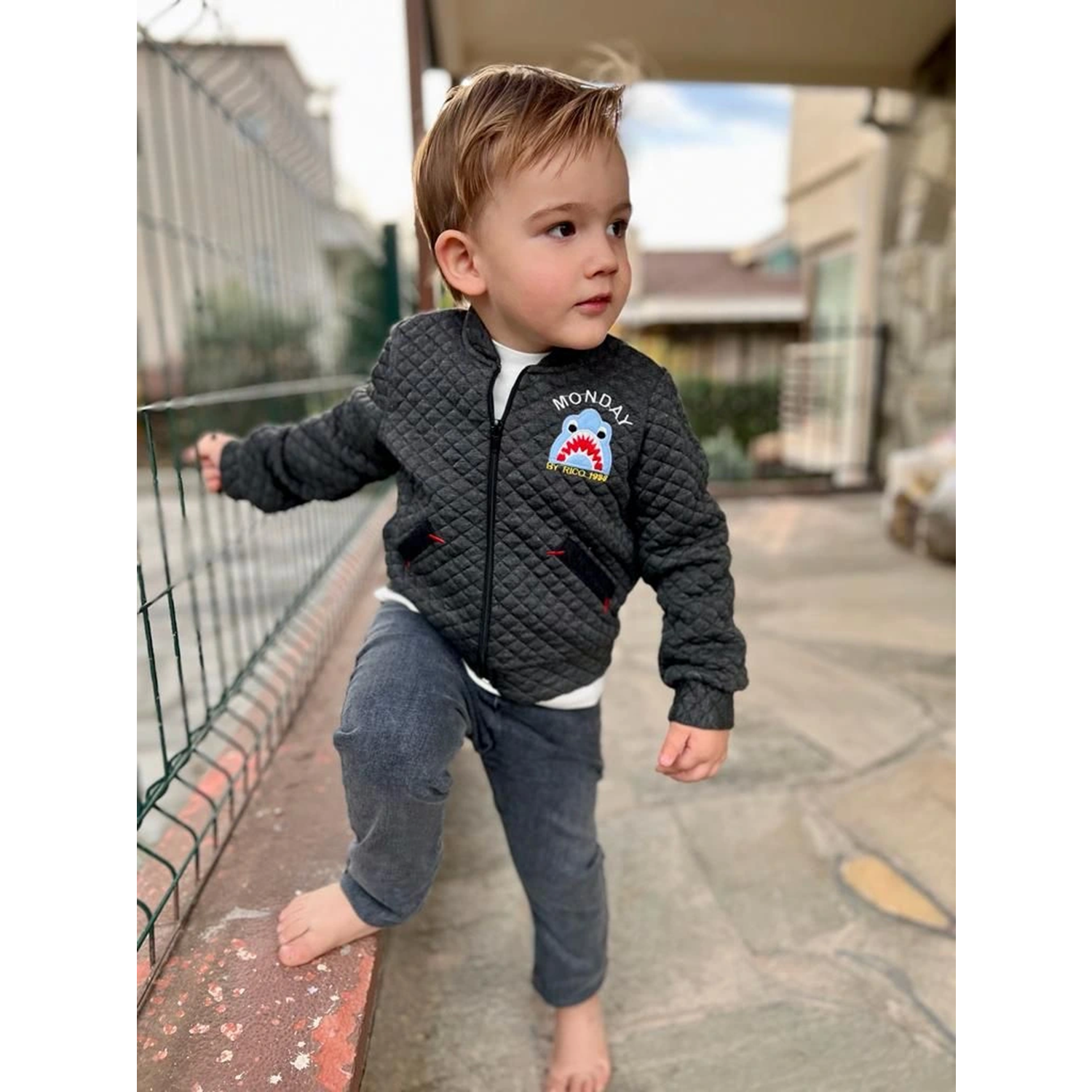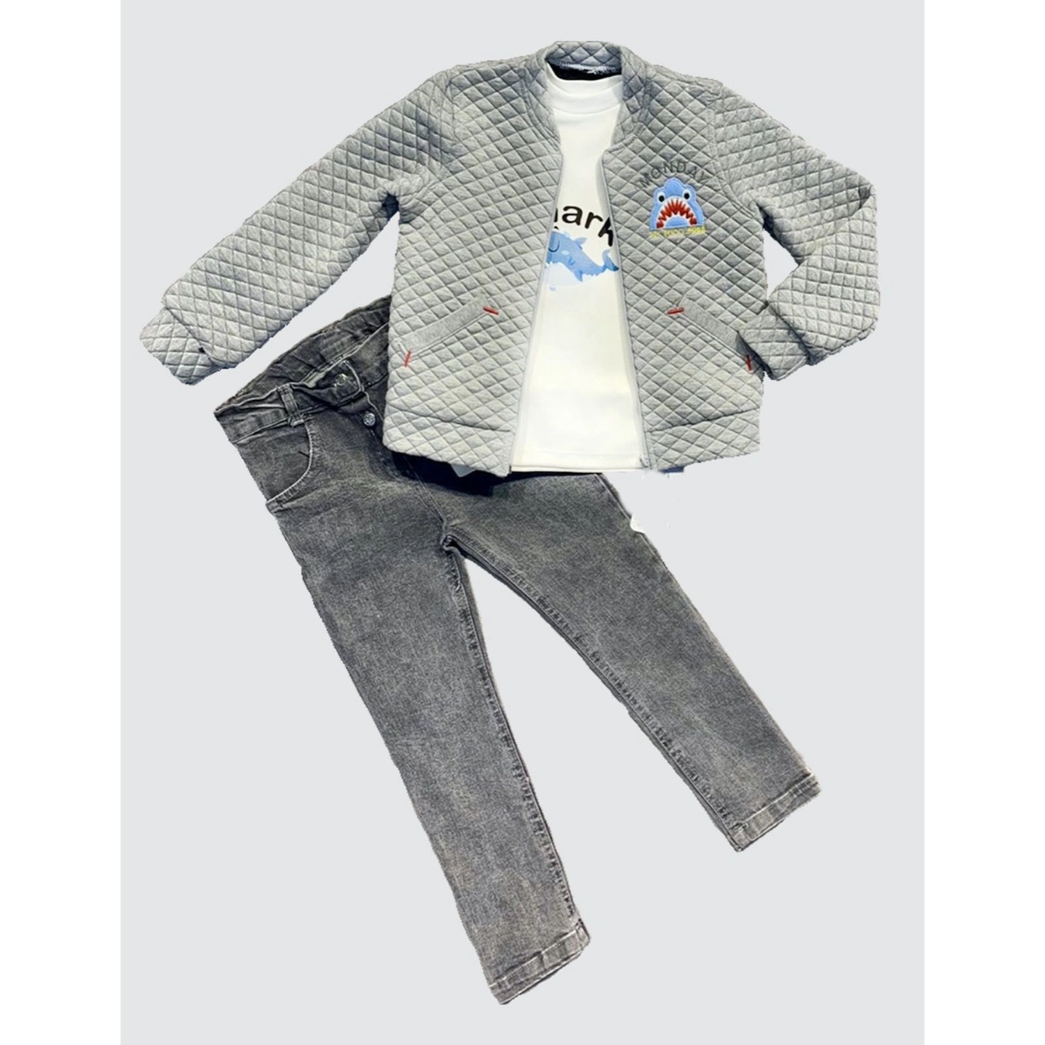 4-5-6 Yaş Kot Pantolonlu Pilot Mont Uzun Kollu Penye Sweat 3lü Erkek Çocuk Takımı